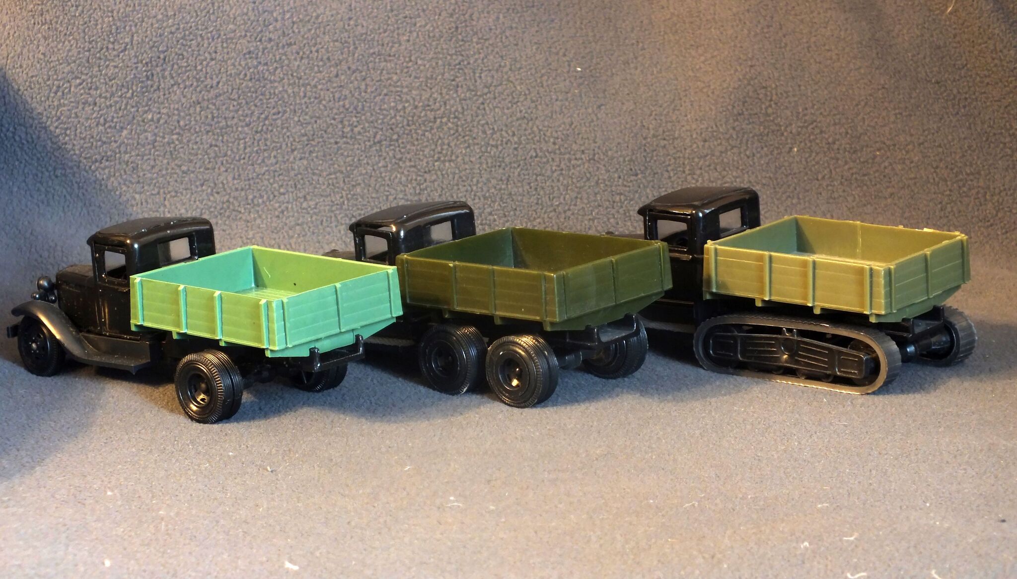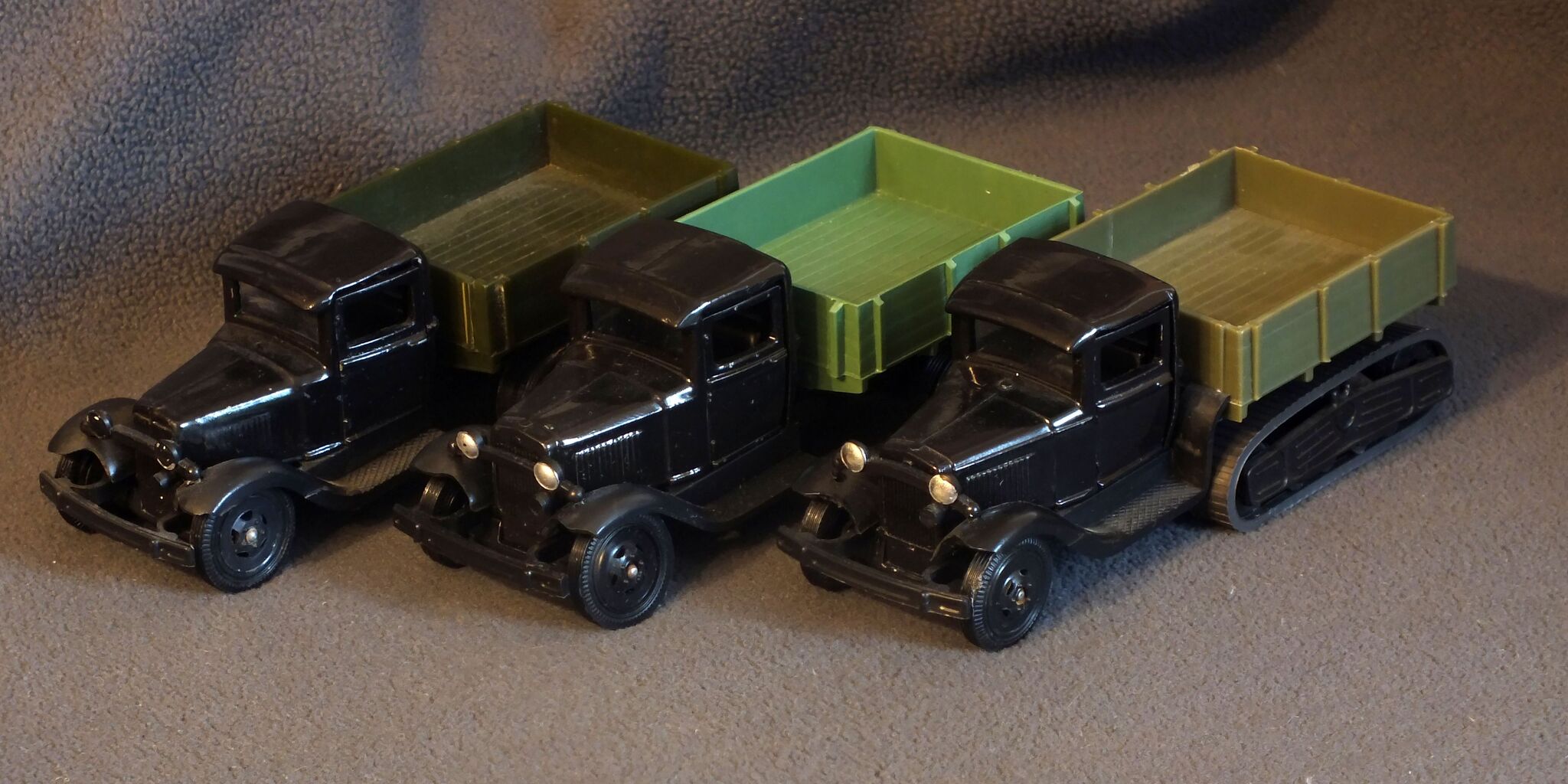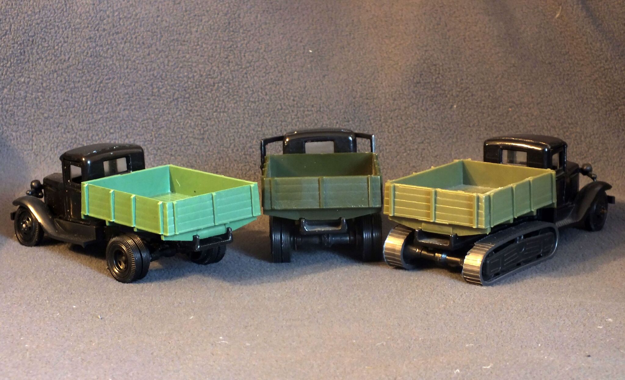 Выпускались двухосевой ГАЗ АА, трёхосевой ГАЗ ААА и полугусеничный ГАЗ 60. Окромя них была ещё модель РАФ-977 ДМ "Латвия", но мне она не особо интересна, поэтому упомяну её только за-ради соблюдения проформы.