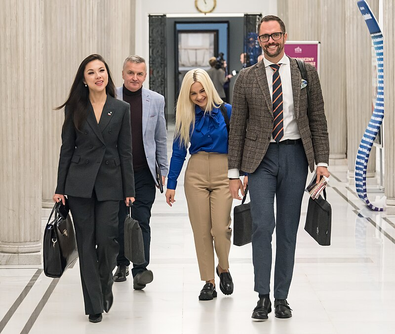 Затем Александра окончила Лондонскую школу экономики, Школу государственного управления имени Блаватника при Оксфордском университете. С 2015 года она работала в лагерях беженцев в Греции, Франции, Йемене и на Украине. В 2023 году стала помощницей мэра Лодзи Ханны Здановской, которая, кстати, провела церемонию свадьбы Славоша и Александры. В том же 2023 году к достижениям Александры добавился депутатский статус.