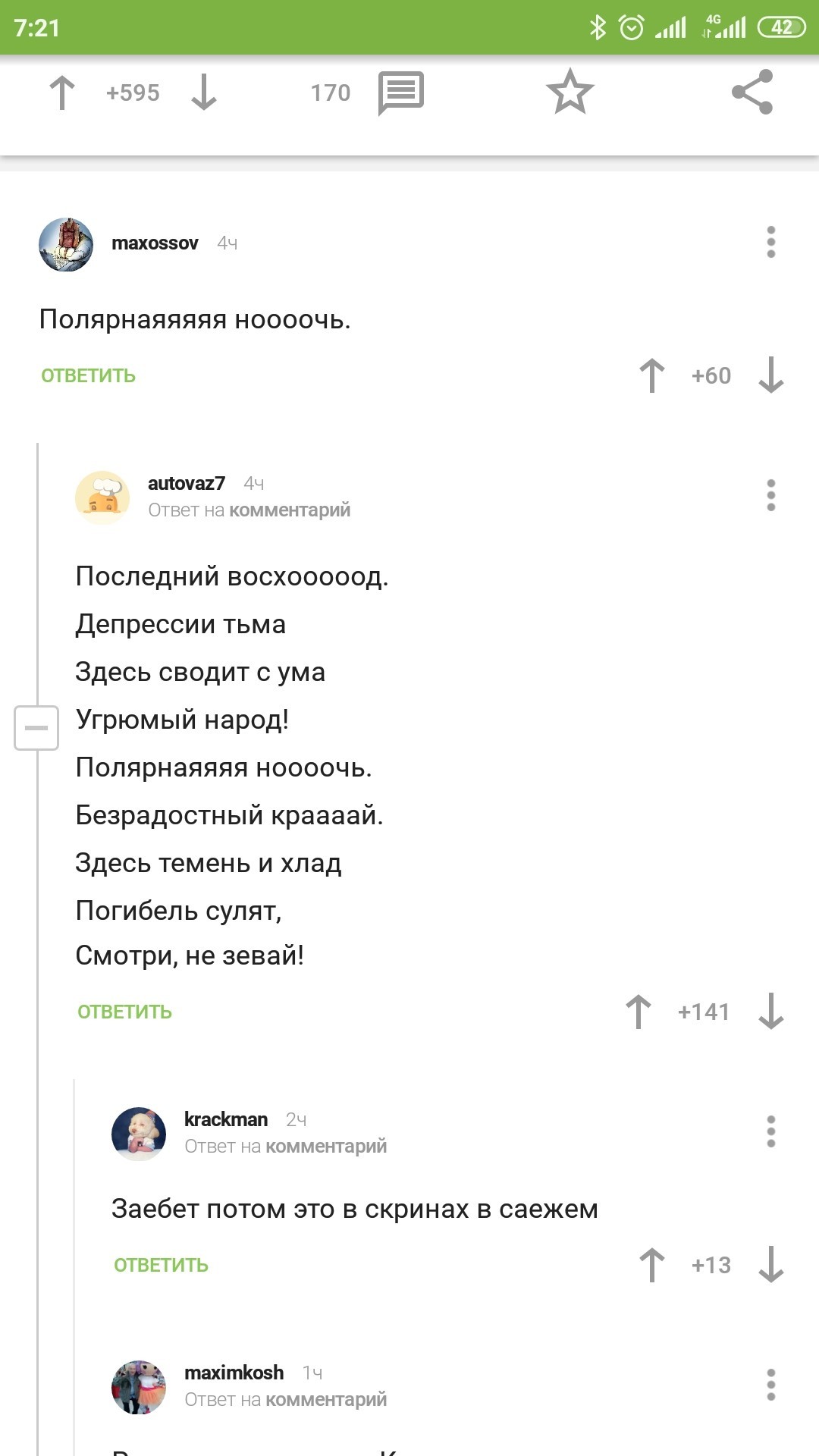 4 aweeee 5 лет назад Полярнааяяяя нооочь @krackman, вот только ради тебя #comment_155612279 Комментарии на Пикабу Картинка с текстом Полярная ночь
