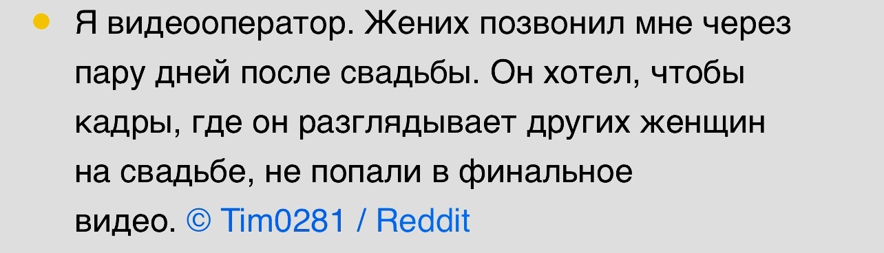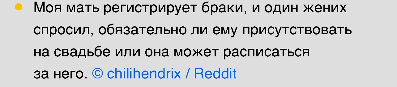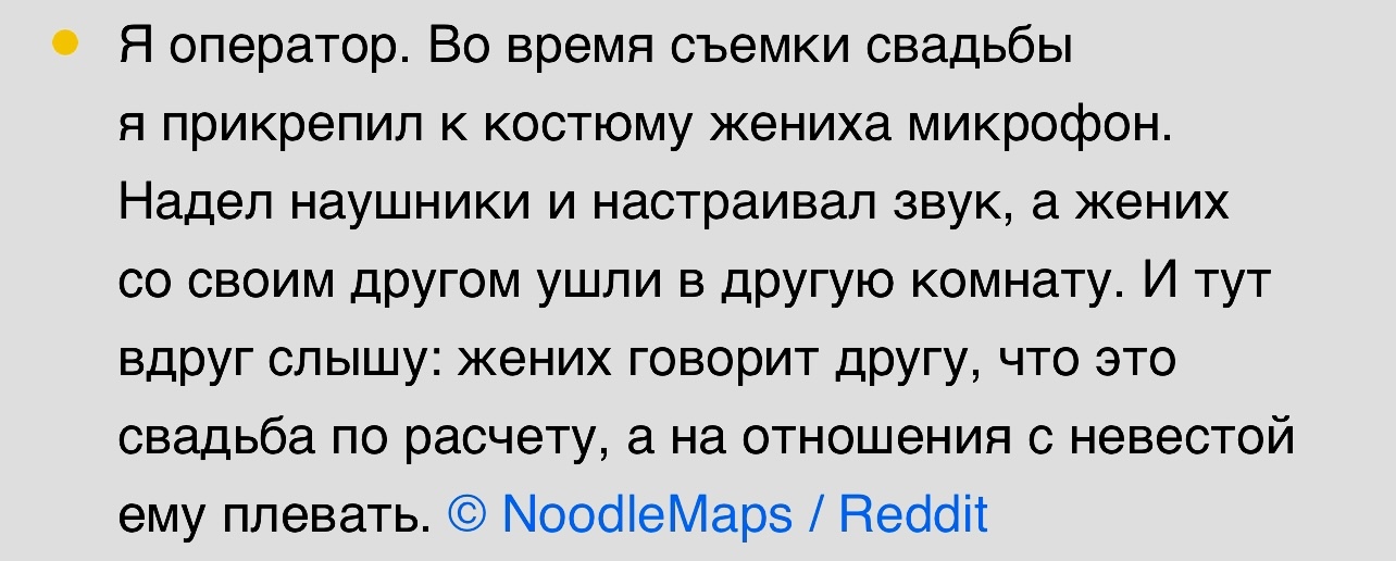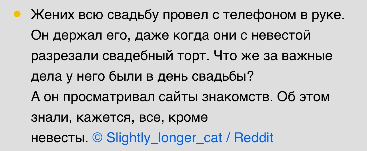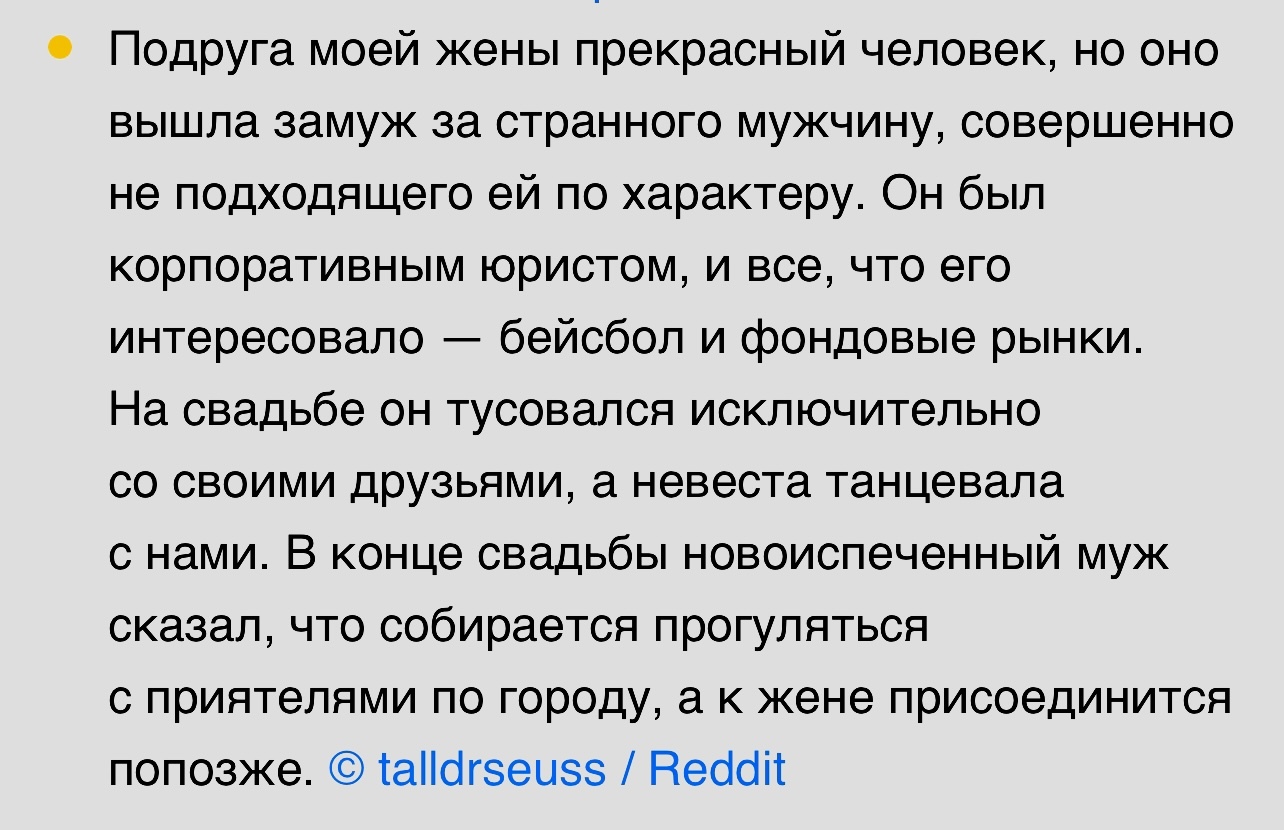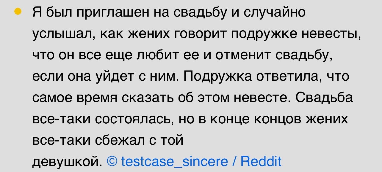 135 Wildwildworld ADME Пользователи сети поделились случаями, которые произошли на свадьбах 2 года назад https://adme.media/svoboda-narodnoe-tvorchestvo/20-sluchaev-... Скриншот ADME Reddit Длиннопост 2 2 1 1 Ещё 0