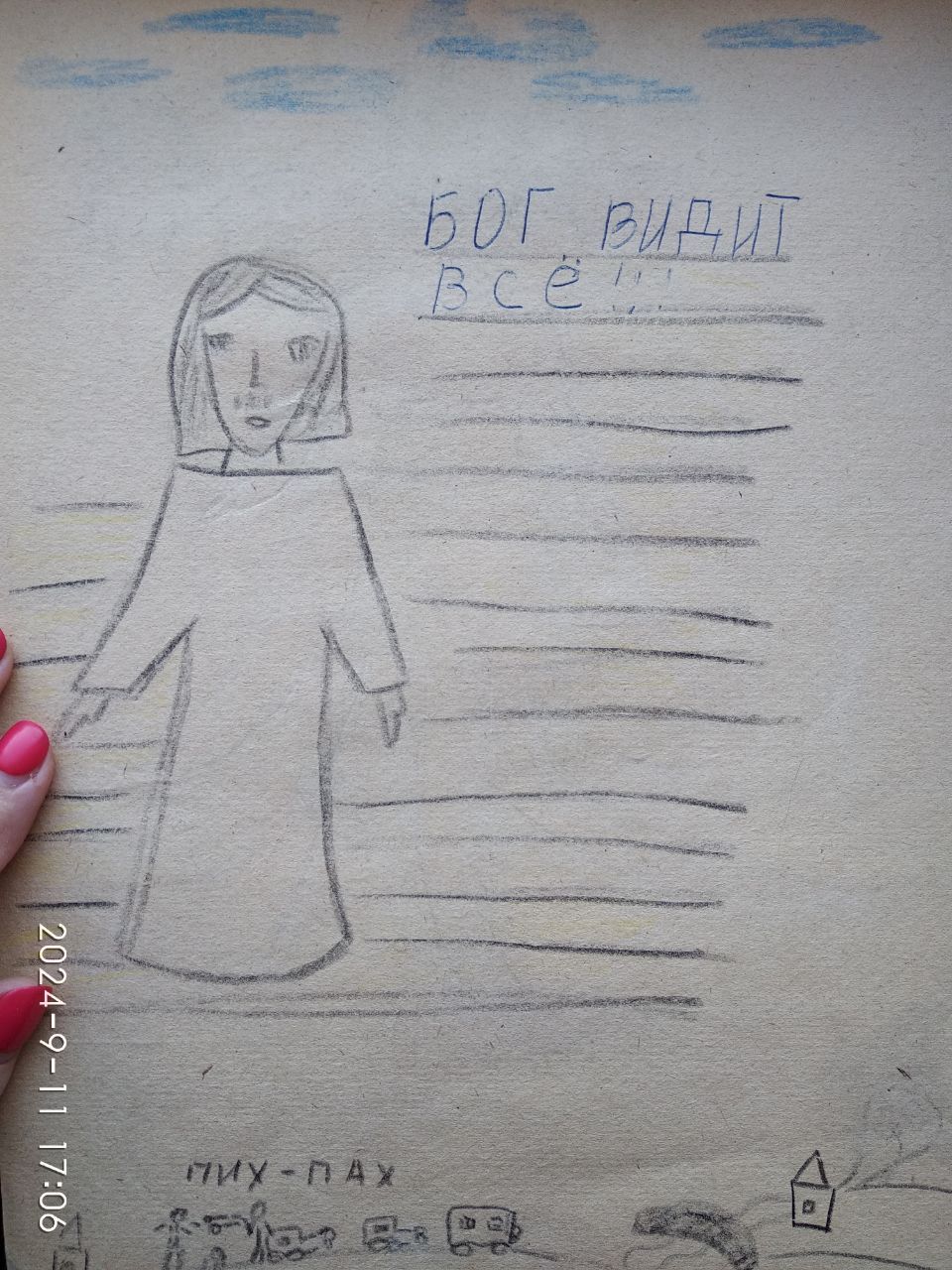 Интересно так же, как я пыталась осознать, что такое религия, Бог и до сих пор зачем-то храню свои немногие детские рисунки, но, опять таки, до этого дня не отдавала себе отчета, что даже размышляю иногда через тексты и образы.