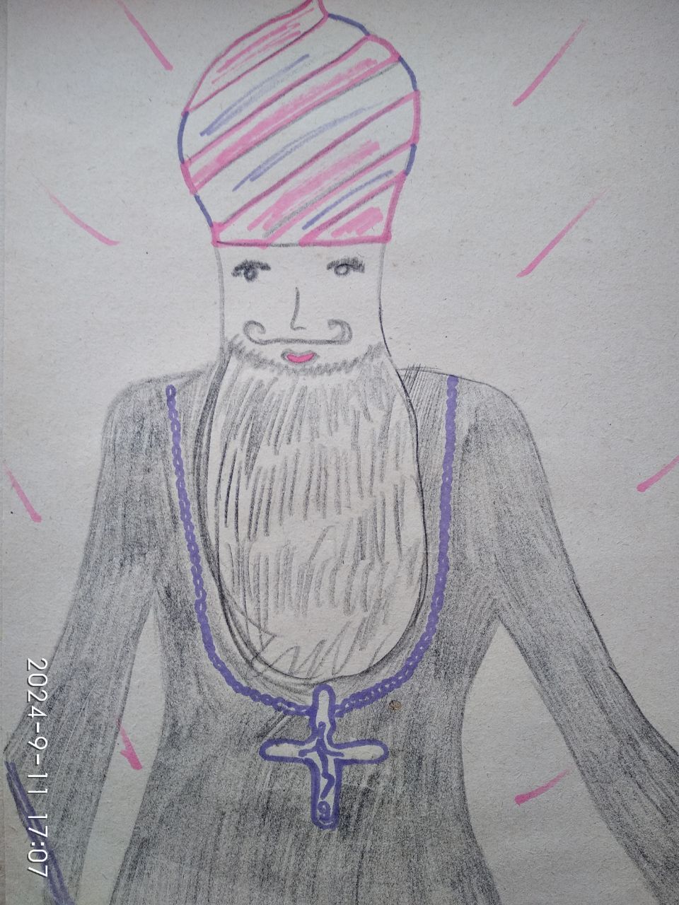 только не смейтесь, но вот такая икона, да. То ли Бог, то ли батюшка с церковным куполом на голове... вообще подразумевалась шапка... а вышло сомнительно, но ок))