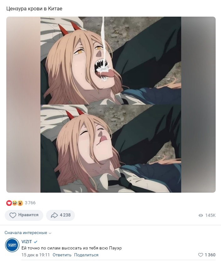 36 Gnidas1999 По-моему получилось хуже 2 года назад Картинка с текстом Мемы Chainsaw Man VIZIT Аниме Power (Chainsaw Man) Ещё 0