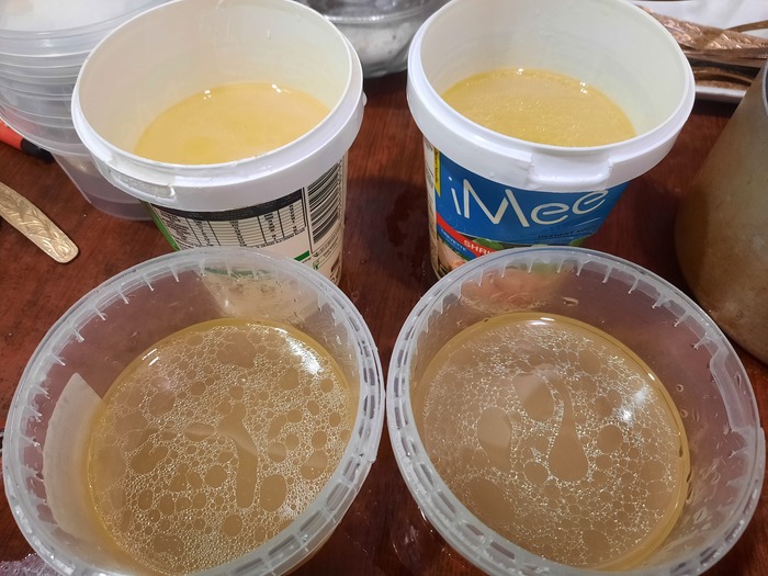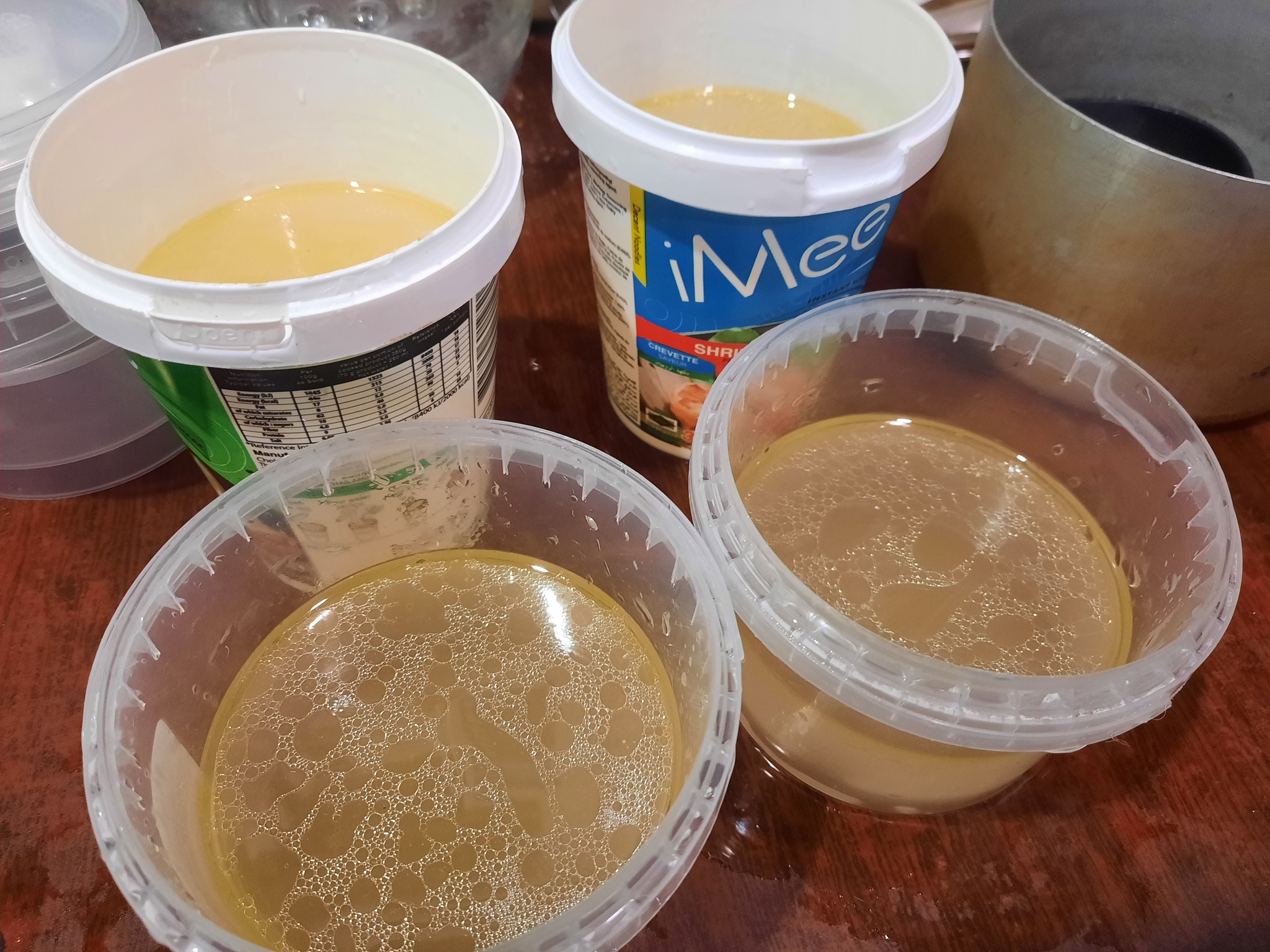 Разлил по таким таркам. От дошиков, обьясню, они созданы для пищи и ведра тоже, поэтому в них, им нужны сильные перепады температуры, для каких - то выделений (химики, физики тут?). Три порции поставил в морозилку (мало ли, там морозилки нет в больничке, а еда сохраница дольше), одну в холодильник, на сегодня, как принесу. Микроволновка есть в каждой больнице.