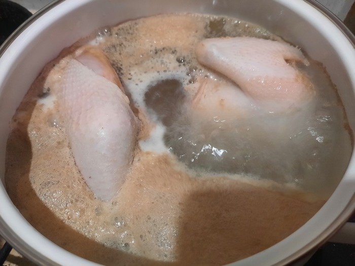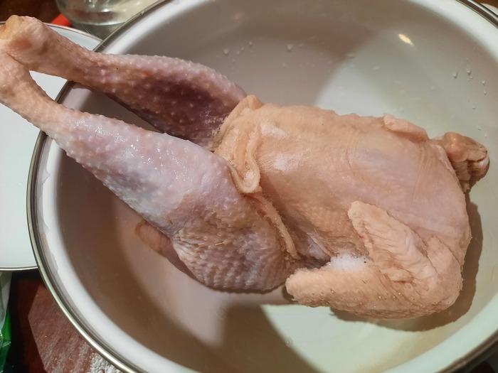 Ну, скажу, курица, реально другая, резиновая блин, не утка и не курица. Кости на утиные похожи.