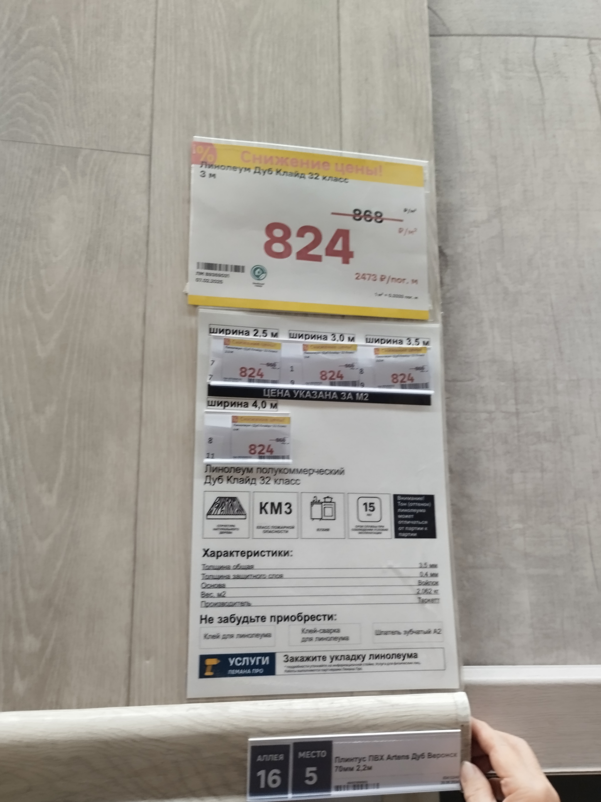 Проехав по трём магазинам и устав от чувства растерянности и проблемы выбора, хозяйка купила последовав совету продавца консультанта вот этот вариант. Почему этот? Консультант сказал два волшебных слова "полукомерция" и "товар по акции". Я хотел поспорить и предложил вариант толщиной 3 мм но, мне сказали "смотри как выгодно" и я успокоился.