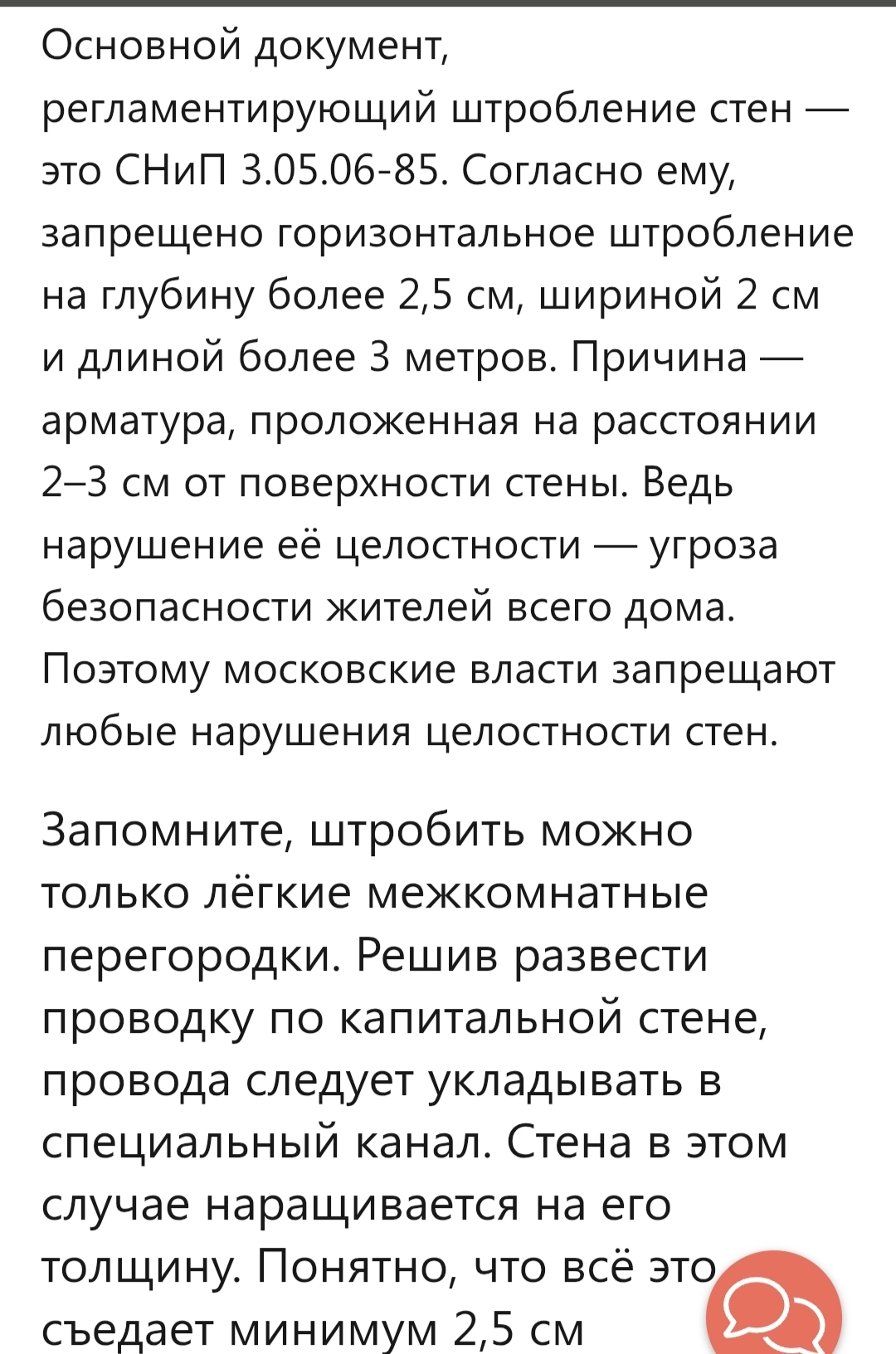 Я понял что с пожилыми людьми спорить бесполезно и принялся за работу которую я своими силами могу сделать. Штробу прокладывал сверля впритык друг к другу отверстия, а затем проламывал перегородки между ними зубилом.