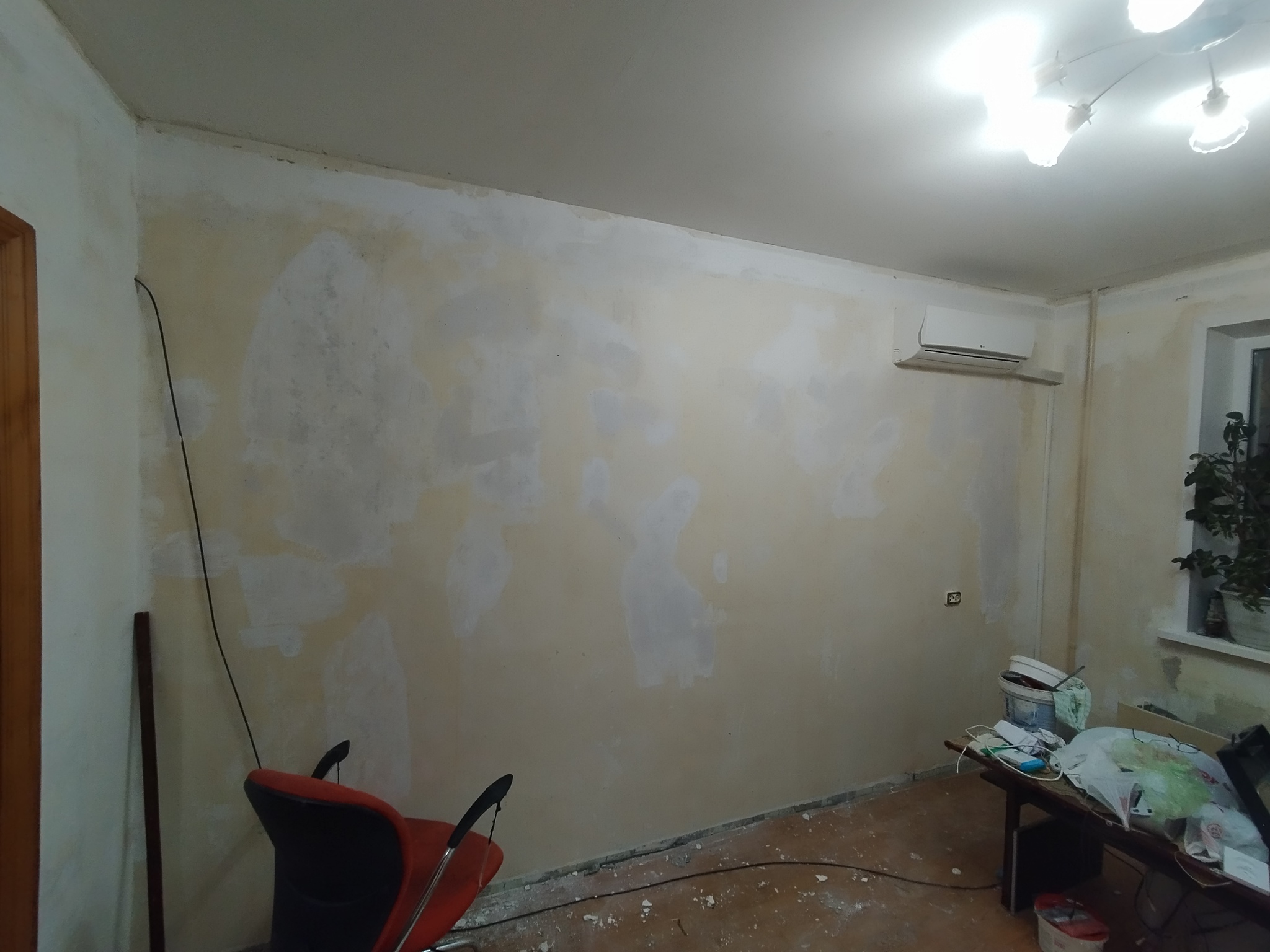 Сначала она, нанесла мечтами грунт, кок где подшпаклевала так как после монтажа потолка шпаклевка мечтами потрескалась, прошкурила стены, нанесла грунт, затем стала работать с обоями.