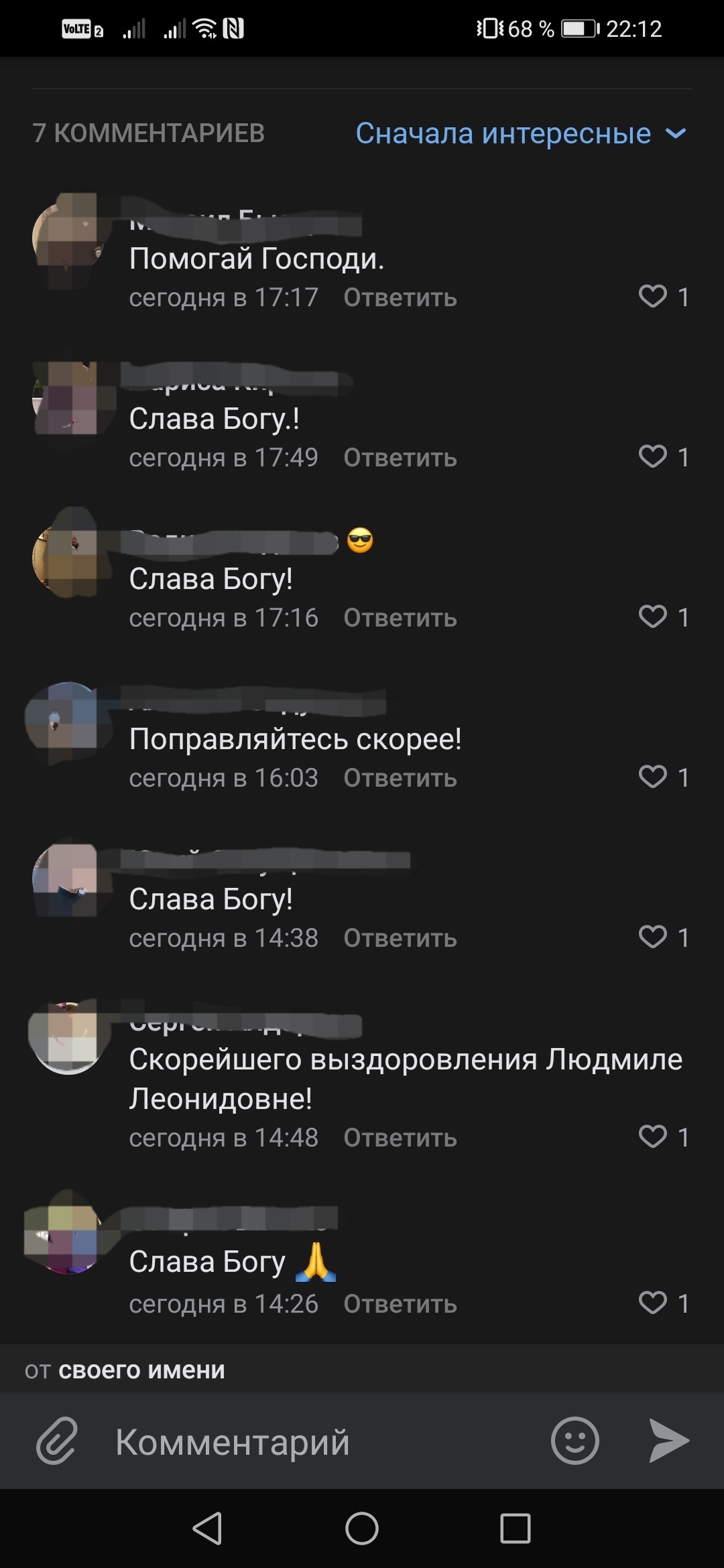 В больнице? Слава богу? Не врачам которые лечат, а богу? Ах ну да, на все же воля божья. И коменты соответсвуют: