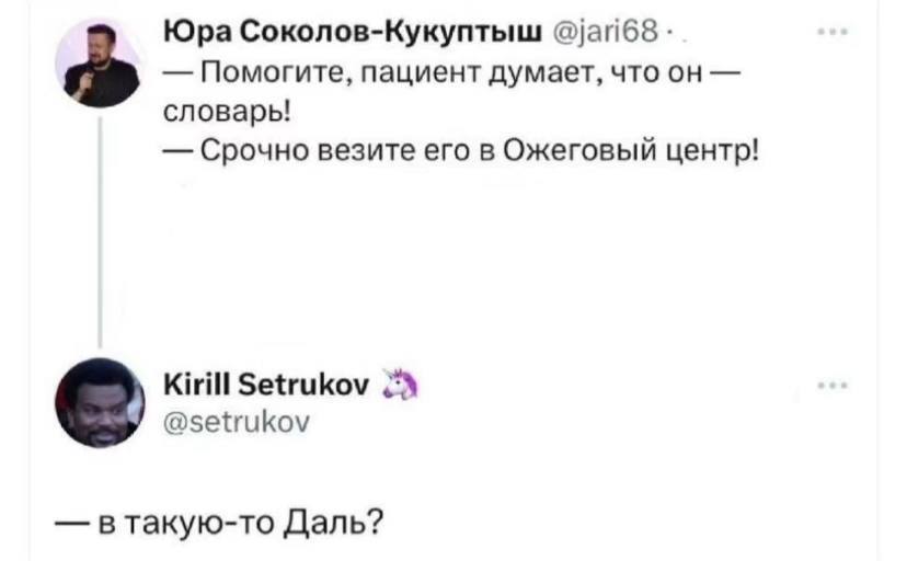 4696 OlegLuboy Помогите! 3 месяца назад Юмор Пациенты Словарь Даля Ожегов Повтор 457 12 9 2 1 Ещё 0
