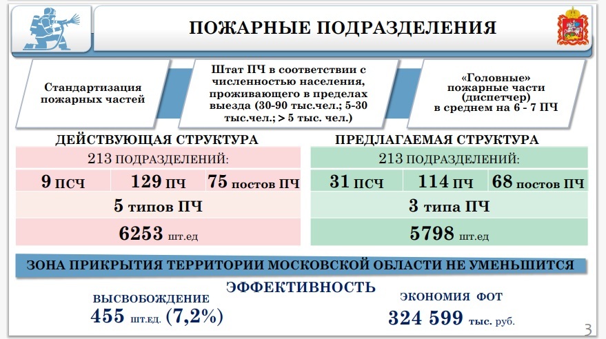 В ГУ «Мособлпожспас»- пожарной охране Подмосковья, в ближайшее время планируется уволить 455 человек - пожарных, диспетчеров, водителей пожарных автомобилей и спасателей. Новое штатное расписание готово и находится в открытом доступе. Часть пожарных частей будет закрыта, в других подразделениях штат планируют сократить вдвое. Составлен документ, в котором нас пытаются убедить что эффективность пожарной службы не уменьшится. Но реальность такова что сегодня на пожар на машине выезжают 3—4 пожарных, после сокращения их будет выезжать по 2!!!! человека. И это в самом большом и густонаселенном после столицы регионе страны! Сотни населенных пунктов, деревень, поселков, сотни СНТ где половина домов с круглогодичным проживанием, заводы и предприятия, сотни тысяч квадратных метров складов и логистических центров, огромные торговые центры и комплексы, целые подмосковные города со всеми домами прошлого века и новостройками, всей инфраструктурой останутся без защиты! Даже в самые голодные 90е годы когда творилось невообразимое , даже тогда не допустили сокращений в пожарной охране! А сегодня, когда в Подмосковье выросли не только плотно застроенные кварталы а целые новые города, количество пожарных частей московской областной пожарной охраны не просто не увеличивается оно планируется к сокращению. Сокращения идут везде - оптимизация, нет средств и т.д. Пусть не в таком огромном масштабе как планируется в пожарной охране Подмосковья оптимизация коснулась например медицины. События 2020 года отлично показали во что это обходится людям и государству. Но если в случае болезни человек в крайнем случае может обратиться в платный медцентр, если нужна защита и охрана обратиться не в полицию, а в частное охранное предприятие, альтернативы в случае пожара кроме пожарного со стволом нет и не будет никогда! После трагедии кемеровской «Зимней вишни» под суд отдали начальника караула Сергея Генина , профессионала который тушил пожары 22 года, пожарного который был на месте через 7 минут после сообщения, с себя снял в дыму кислородную маску и одел на пострадавшего, тащил его на себе с четвертого этажа в дыму и темноте, в итоге спас человеку жизнь. Этого пожарного судили. Потому что спасли только одного. А 60 погибли. Из них 41 ребенок. У начкара Генина и его двух бойцов была возможность хотя бы войти в задымленное здание, по правилам звено с аппаратами по защите дыхания должно состоять из трех человек. После сокращений 455 человек в пожарной охране «Мособлпожспаса» не будет и этого. Опыт показывает, что рассчитывать на работу добровольцев на пожарах, как предлагается теми кто планирует эти сокращения это полная утопия. Черезвычайная ситуация, а любой пожар это всегда именно такая ситуация, всегда требует работы ответственных профессионалов. Доброволец - это помощь по минимуму, хорошо если вообще не вред. Кого будут судить в Подмосковье где таких «Зимних вишен» по периметру МКАДА стоят сотни? Пожарных, которые за зарплату кассира в «Пятерочке» карабкаются по горящим крышам, ползают по задымленным подвалам, оврагам, трофяным болотам, тушат гектары травы, склады, здания, дома в любое время года и суток? К этому обращению мы приложим таблицу с новым штатным расписанием. Оцените не только содержание (хотя оно просто ужасает) но и дизайн. Очень интересно скольк