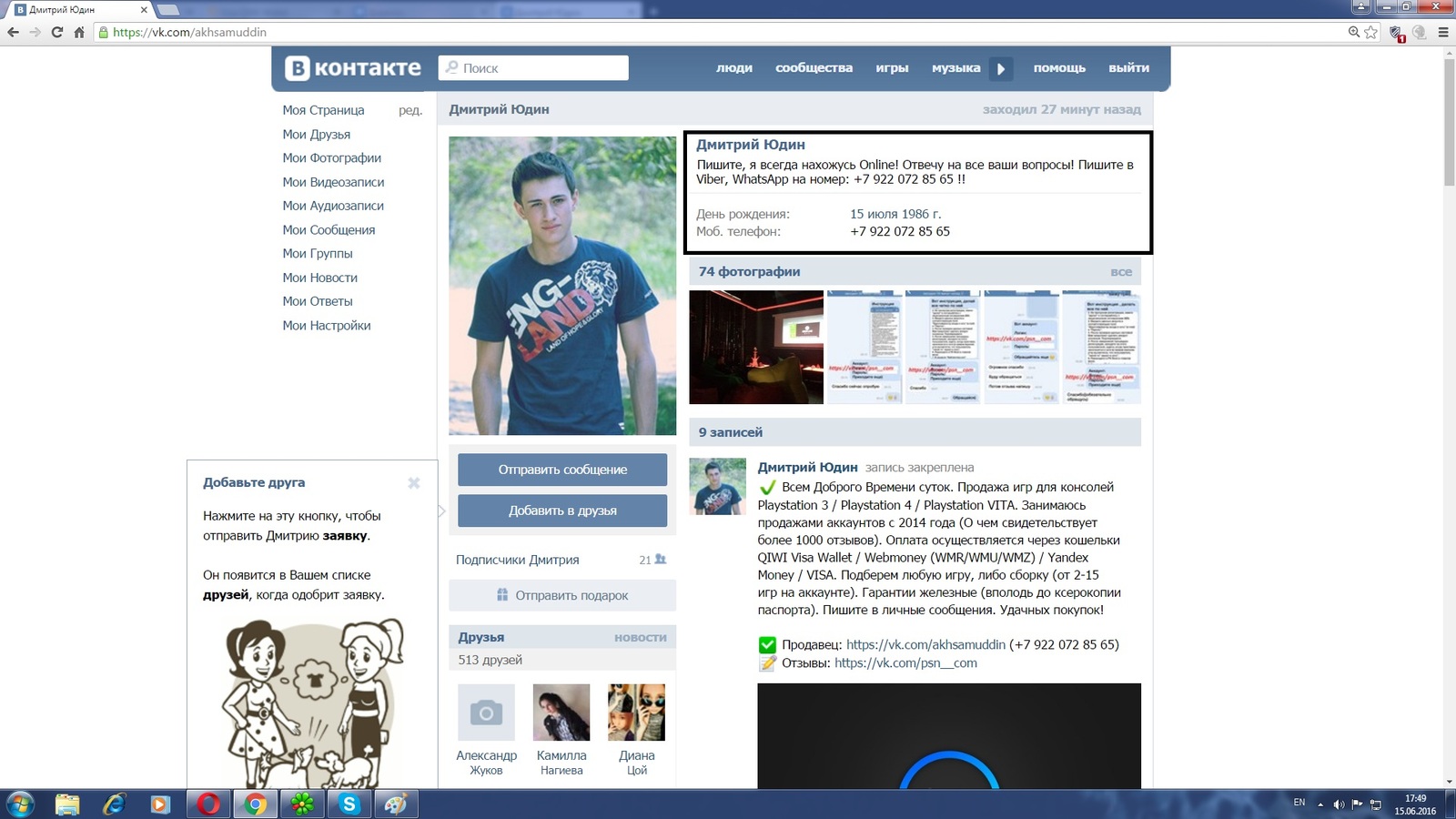 Добрый день взываю к силе пикабу. Понимаю денег уже не вернуть, но суть не в этом. Нужно как можно маштабнее наказать недочеловека. Собственно история. Мой друг купил бу приставки ПС4 дл клуба, купил без дисков, поэтому решили купить несколько аккаунтов с играми для приставок. Нашли некоего индивида в вк который предложил за 1600 руб. мульти аккаунт с играми на три приставки. Что по деньгам нас устраивало. Но получив деньги на свой гиви кошелек он скинул в чат левую какую то почту и кинул меня в черный список. На его странице есть его типо постоянный телефонный номер с вибером и ватсапом. а также есть еще один телефонный номер его гиви кошелька. также есть пруфы нашей переписки. Где он также писал что он не последний человек на пикабу.