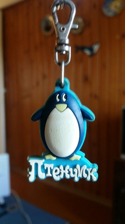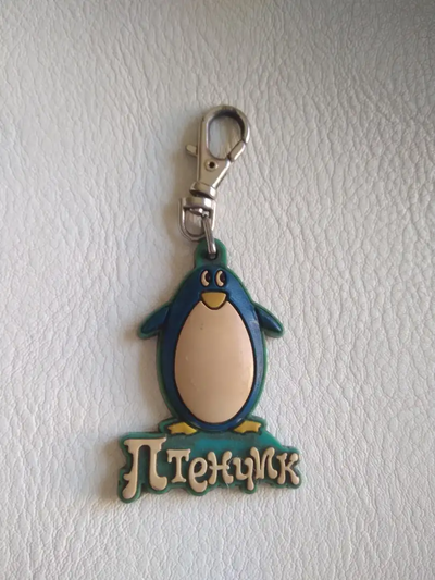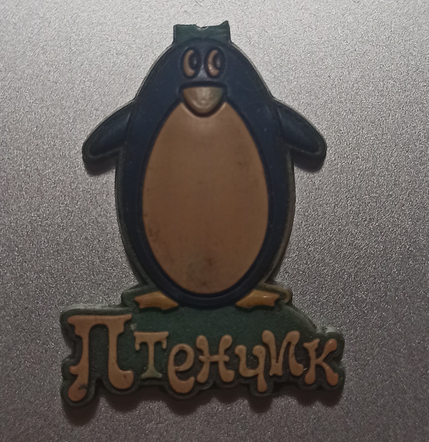 Искала в интернете, но такого нет, даже картинку не нашла. Их была целая коллекция, с разными подписями, и звери разные. Плоский, гибкий, типа резины, в ногах у пингвина буквы. С обратной стороны однотонный синий, фигурный, как бы вырезан по контуру пингвина и букв.