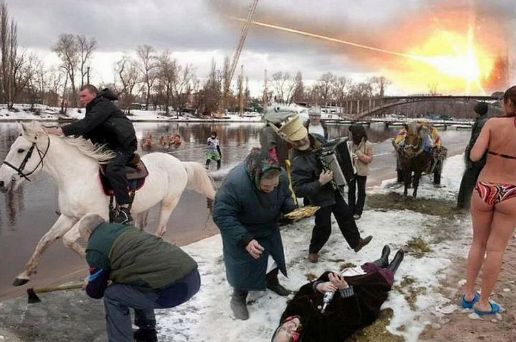 Помню что там была лошадь которая куда-то бежала, бабка молилась или убивала кого-то, метеорит падал.