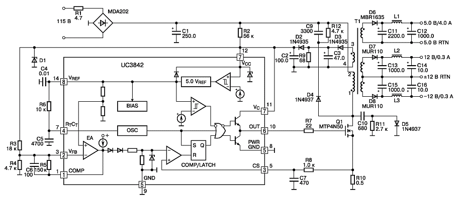 Смотри схемы других питальников где 3843 присутствует, принцип работы там будет на 95% такой же