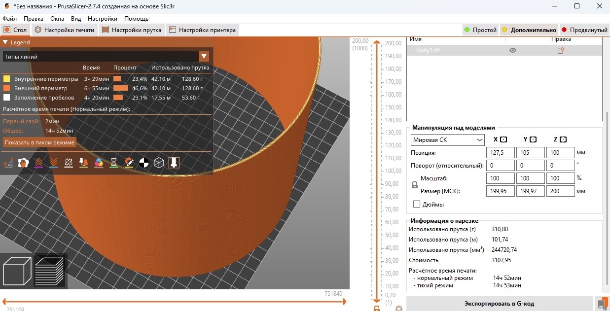 Учтите, что деталь такого размера будет печататься часов 20 на далеко не самом медленном принтере.