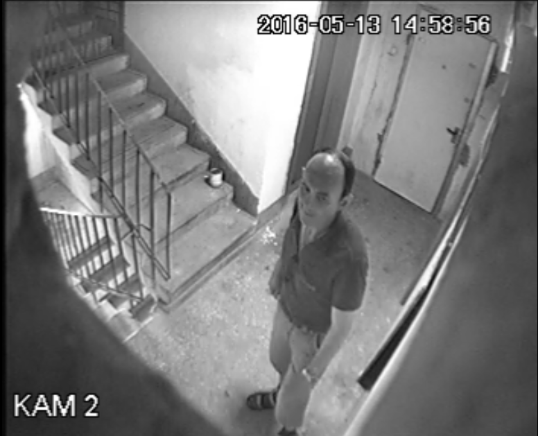 это он накрывает влажной салфеткой панель видеодомофона.