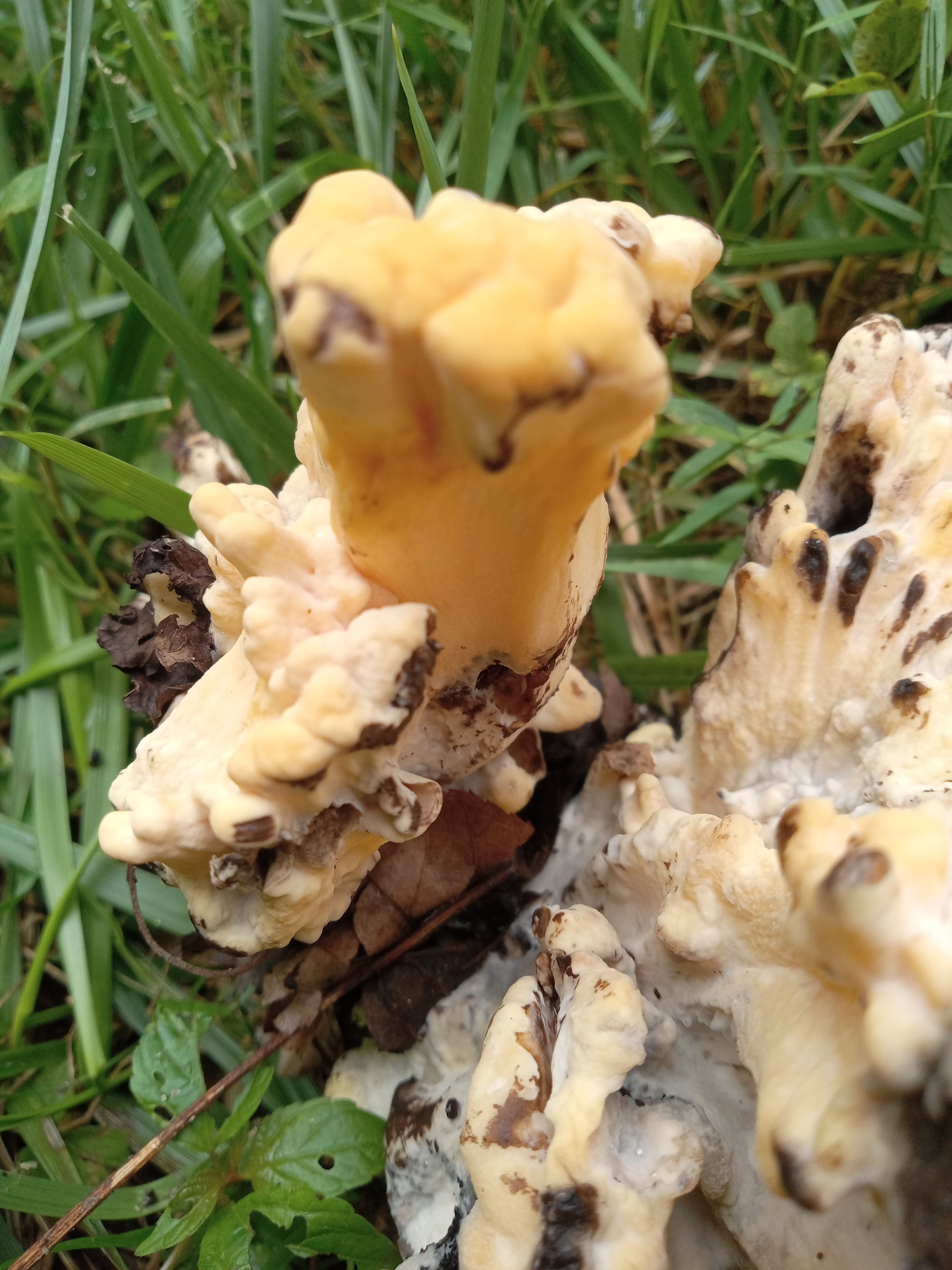 Нашёл монстра, по цвету точно как лисички. Принёс посоветоваться с соседями, никто такого раньше не видел.
