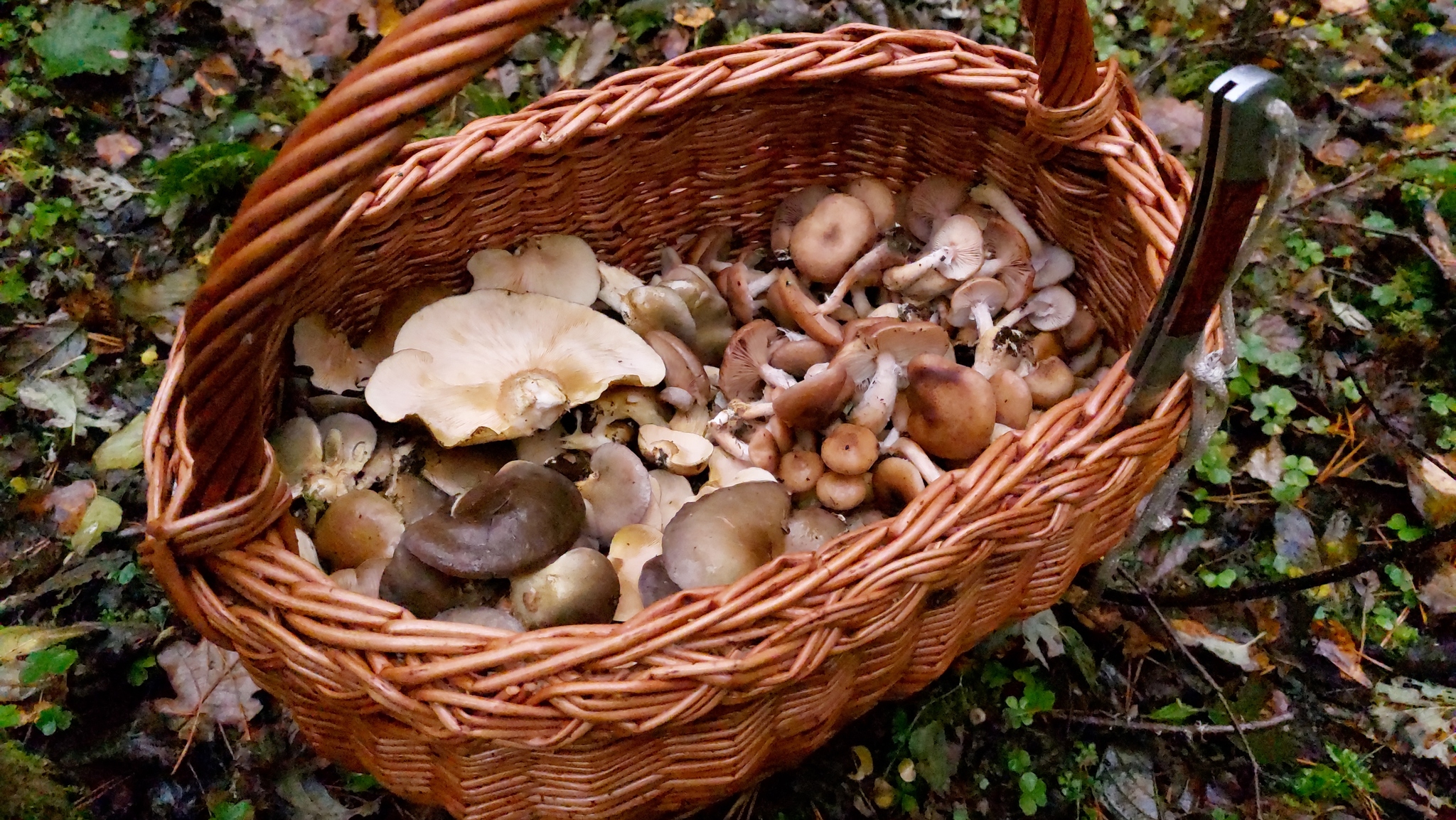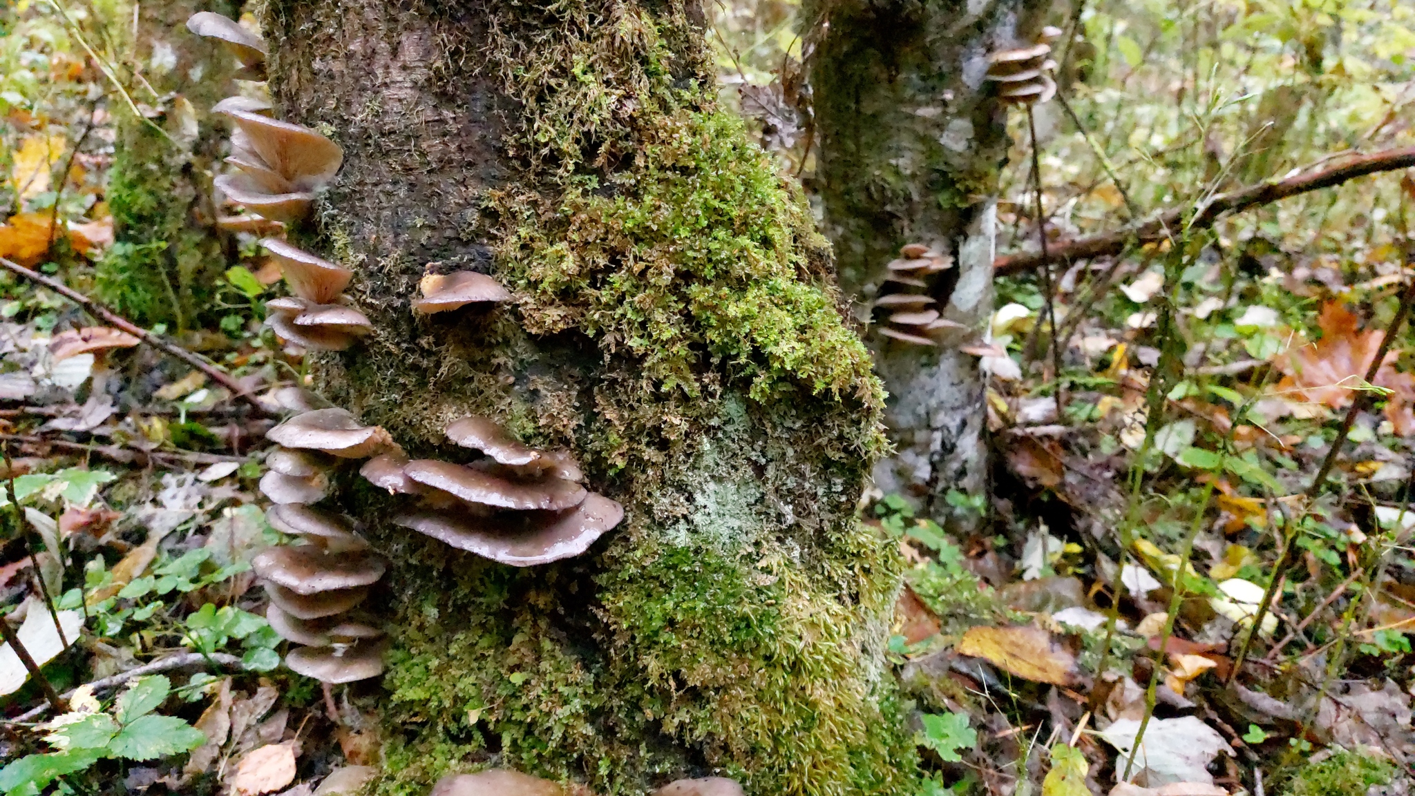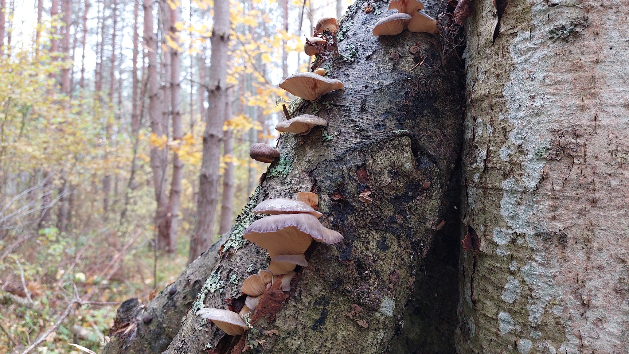 Весной посадил на березовые поленья покупной мицелий зимнего опенка. А сейчас рядом с ними выросли непонятные мне грибы.