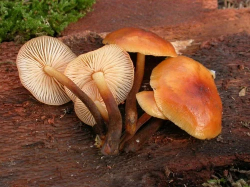 Вроде как это и есть зимний опенок, а может и нет. Выросло несколько куртин вокруг, некоторые сантиметров десять от пней, при чем, раньше ничего такого там не росло. Смущает что они выросли из земли, а не на пнях. Давно был траванулся галереной, теперь страшно пробовать. В общем, кто имел дело с фламмулиной, прошу посмотреть.