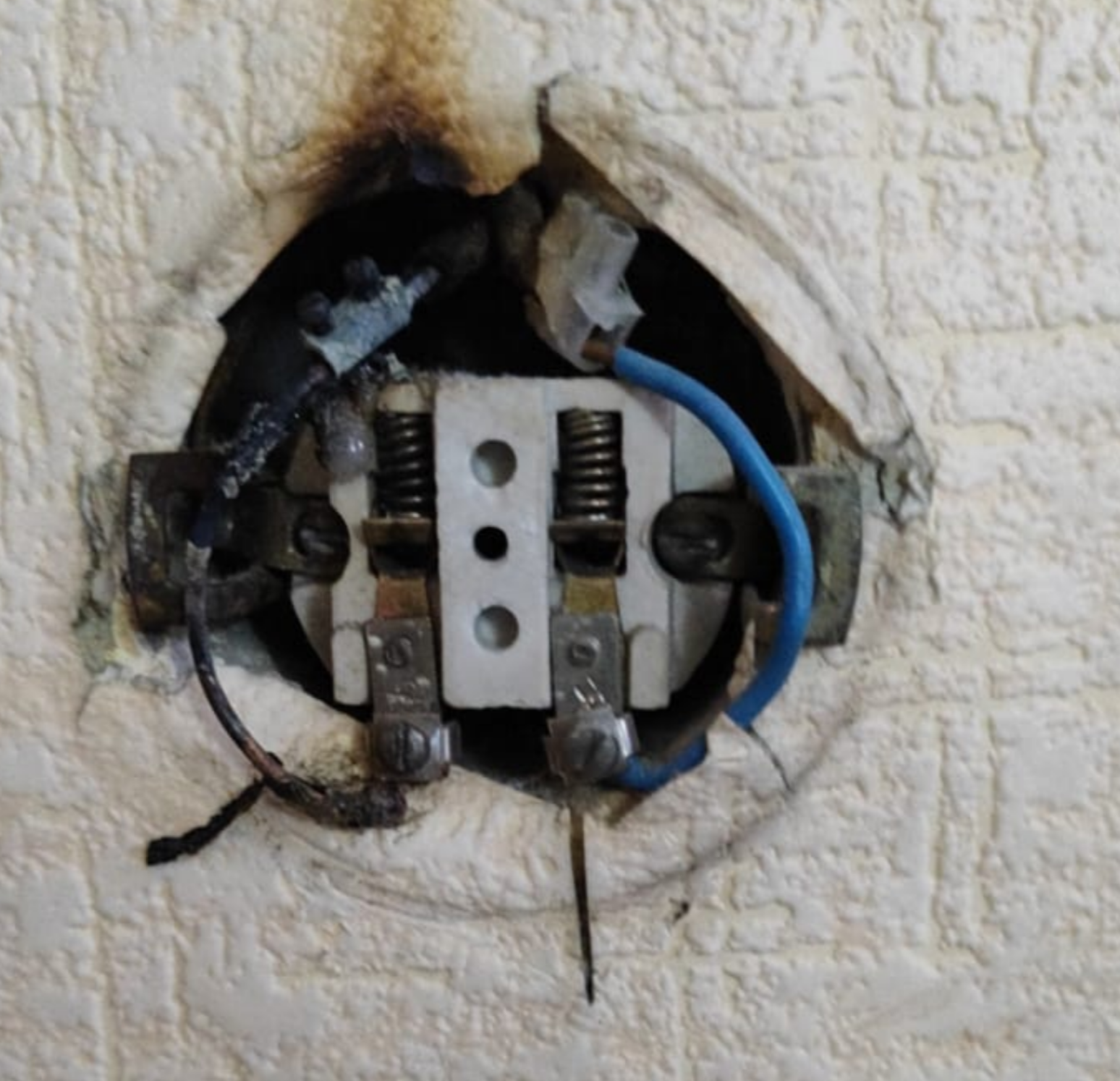 Нарушение в соединении этими мелкими штучками понятно, так и запитаны были от этой розетки монитор и комнатный вентилятор, нагрузка минимальна.
