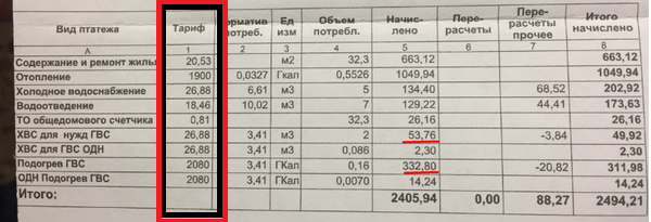 Извините, что обращаюсь с таким глупым вопросом, но не могу посчитать плату за горячую воду. Снимаю квартиру недавно - договорились, что плачу только по счетчикам. Пришла квитанция с такой таблицей: