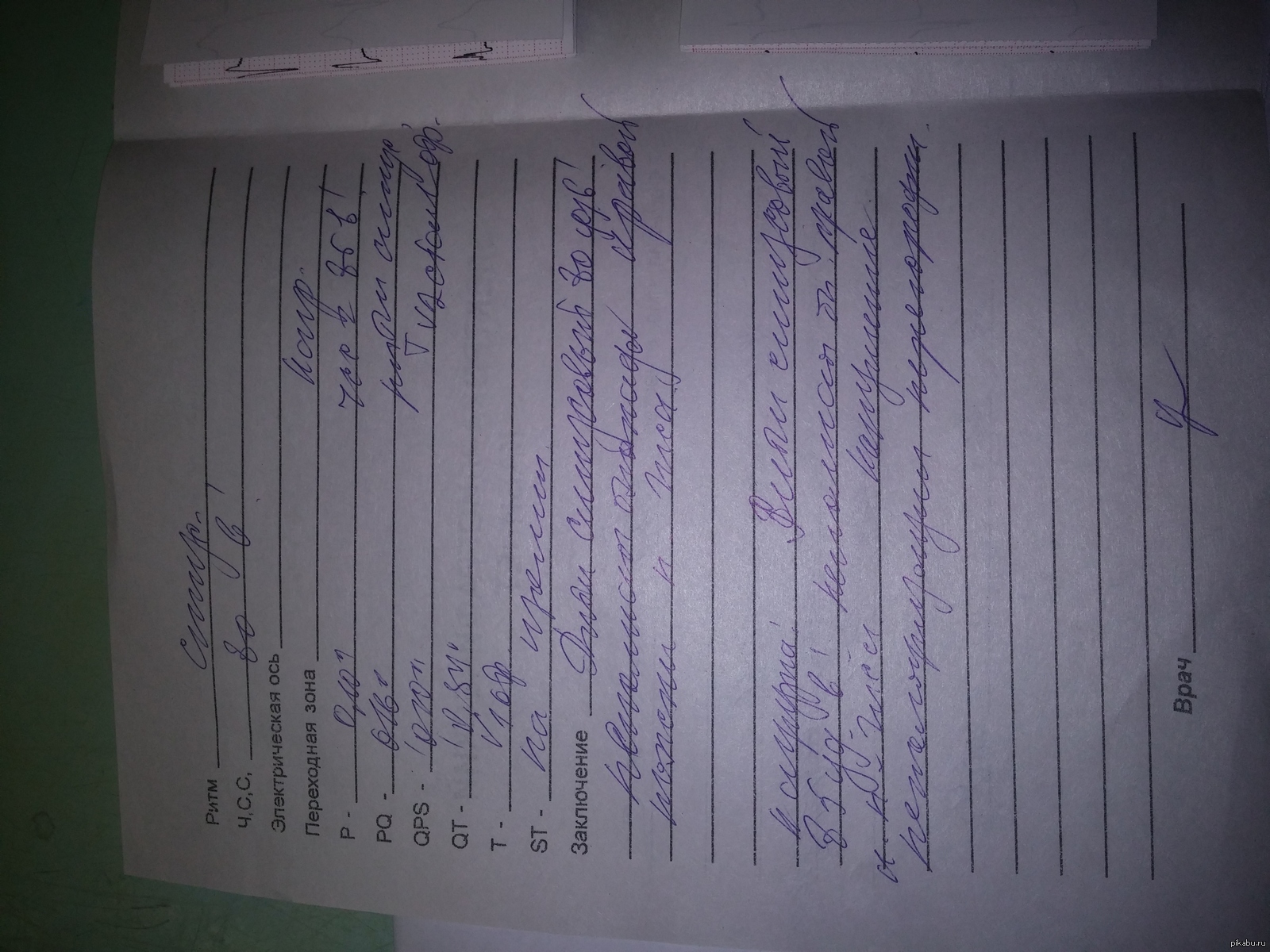 Nik.lop 11 лет назад Помогите пожалуйста расшифровать. Поступаю в военное, хочу знать, что тут написано. Можете минусовать)) Ответ сказали) всем спасибо) [моё] ЭКГ Врачи Врачебный почерк