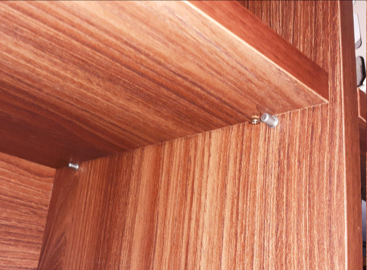 Накалил на газе болт до красна , наклеил малярный скотч на нужное место и приложил раскалённый болт к полке. Ножом потом место углубления поскоблил от гари. Инструмент - нож, малярный скотч, плоскогубцы, болт, газ или газовая горелка.