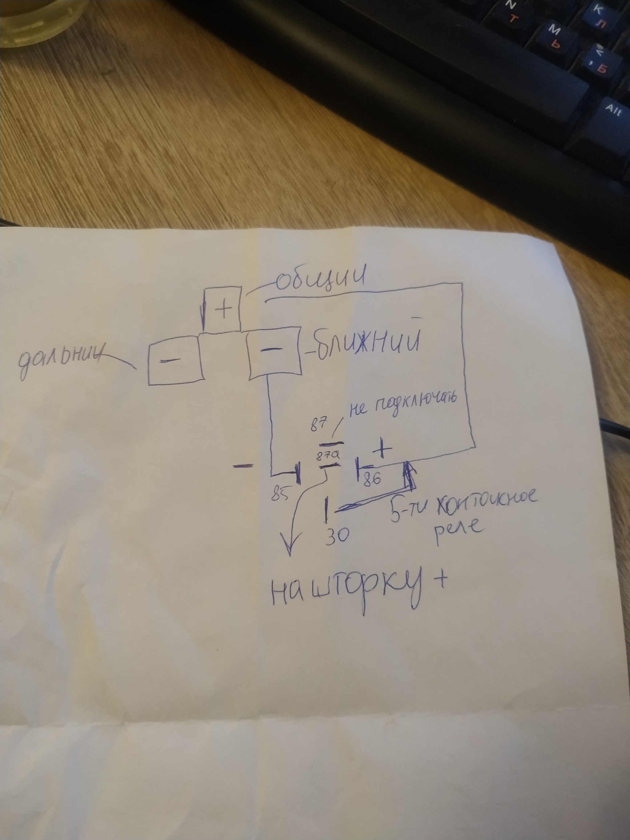 4-х контактное реле. Клеммы 87 и 86 кидаю на плюс (ближний), на 85 подаю минус (дальний), на 30 получаю плюс (на шторку дальнего). Это из минуса получаем плюс. Грубо говоря. Но одно но при таком подключении на 85 контакте тоже появляется плюс т.к. катушка замкнута.
