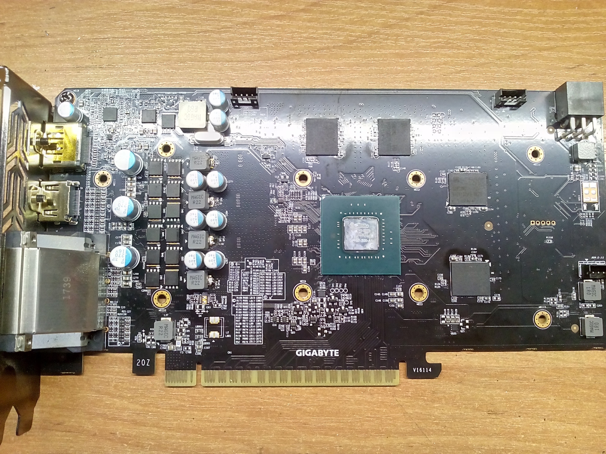 Нужна помощь в ремонте видюшки Gigabyte GTX 1050. Неожиданно потерялась из списка устройств и всё. Вскрытие показало коротыш по питанию по всем этим четырём маленьким дросселям на фото. Они сходятся в одну жирную, распределяющую это напряжение, площадку. Вот и вопрос - это какое напряжение тут должно быть? 5В? 3.3В? Подскажите, какое безопасное напряжение можно подать на эту площадку чтобы тепловизором или фризером определить виновника? Ничего выгоревшего, подгоревшего и даже просто подпаленного на плате нет. При работе температура не поднималась выше 70 градусов.