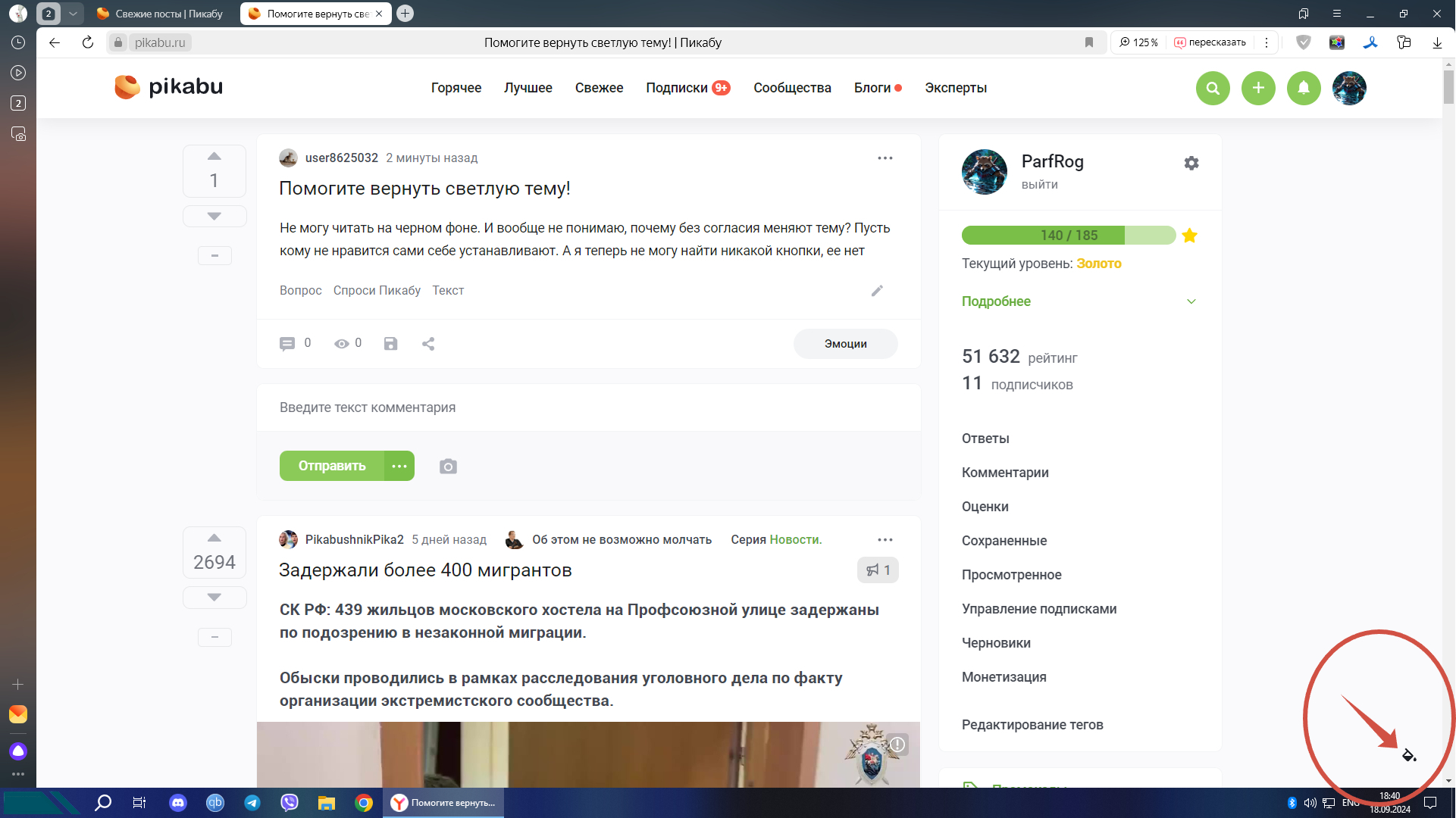 user8625032 Помогите вернуть светлую тему! 1 год назад Не могу читать на черном фоне. И вообще не понимаю, почему без согласия меняют тему? Пусть кому не нравится сами себе устанавливают. А я теперь не могу найти никакой кнопки, ее нет Вопрос Спроси Пикабу Текст Ещё 0