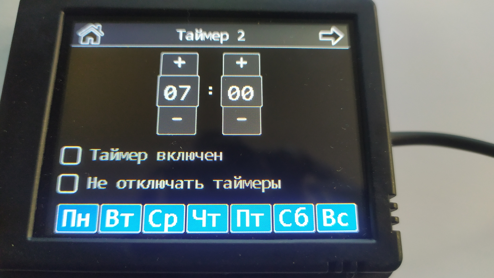 Один день после установки таймера он отрабатывает на отлично. Утром в 07.00 запускается, и в 07.30 я уже сажусь в теплый салон. В параметрах выбор Еж. Ежедневно.