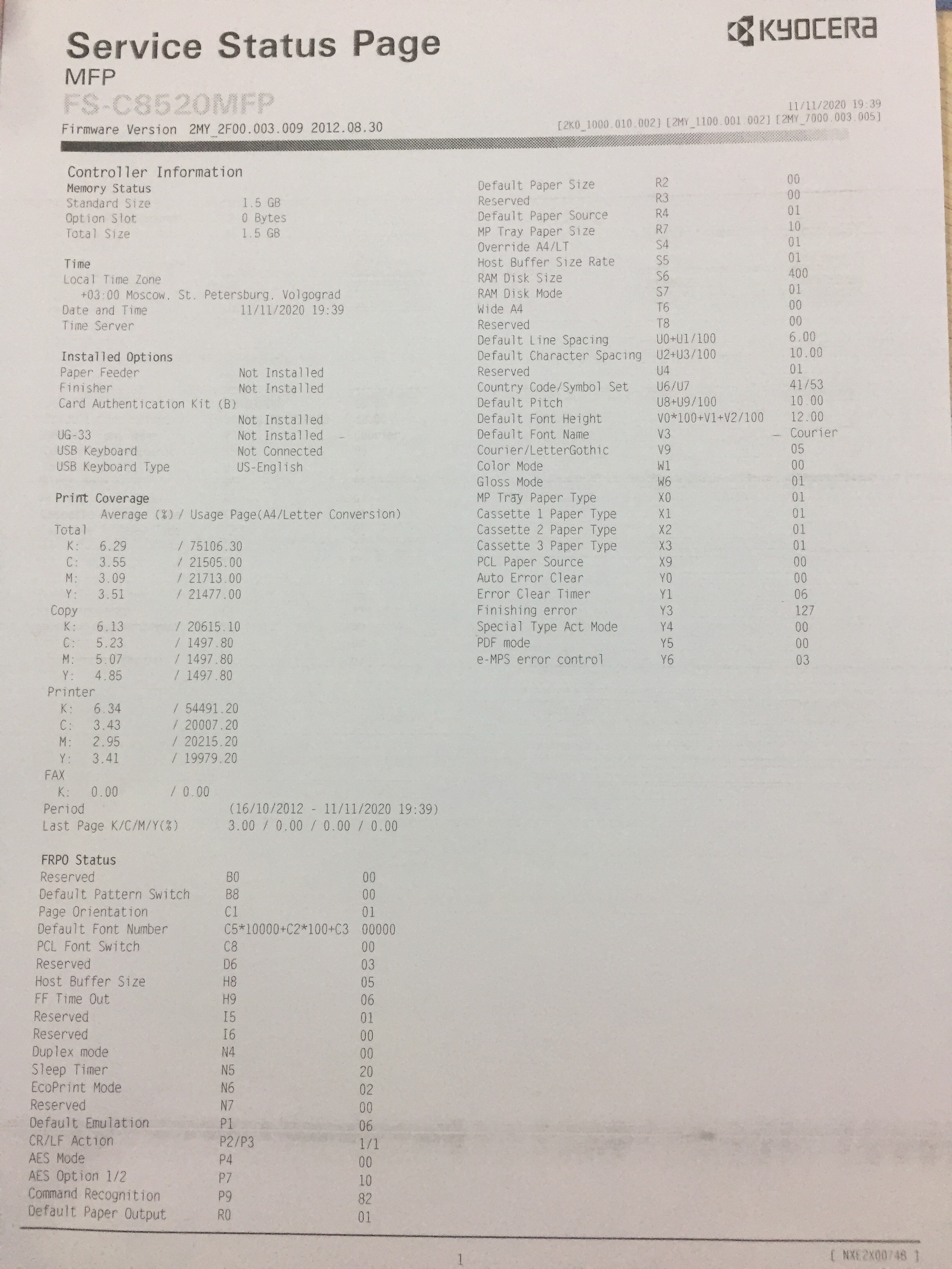 Помощь в ремонте МФУ KYOCERA MFP FS-C8520MFP