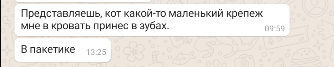 Стояла кровать разобранная. Пришло время её собирать. Везде посмотрела, у всех спросила - непонятно куда пакетик с крепежом делся. В итоге нашла, но искала долго, полчаса или около того, и не шепотом. Собрала, всё в порядке. Уехала, мама мне пишет: