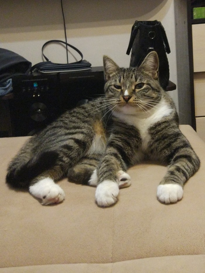 Ну я его подобрал и поставил перед фактом))) Причём, он ко мне бежал в руки с помойки, я не раздумывая его взял))) Вот так мы нашли друг друга)