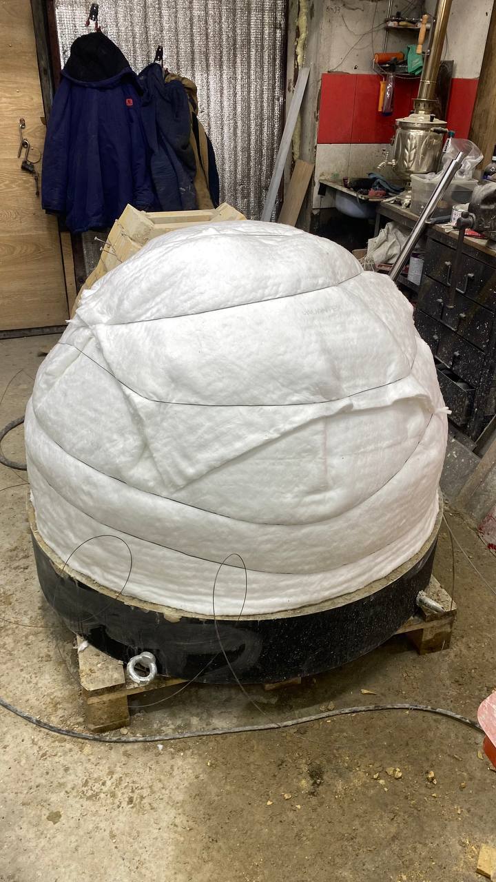 Потом мы едем в печной центр и закупаем фольгированный картон, мин вату, сетку для штукатурки, плиточный клей, каолиновую вату, трубу 200мм. ~ 10тр..Снова привозим все в гараж и начинаем утепляться)