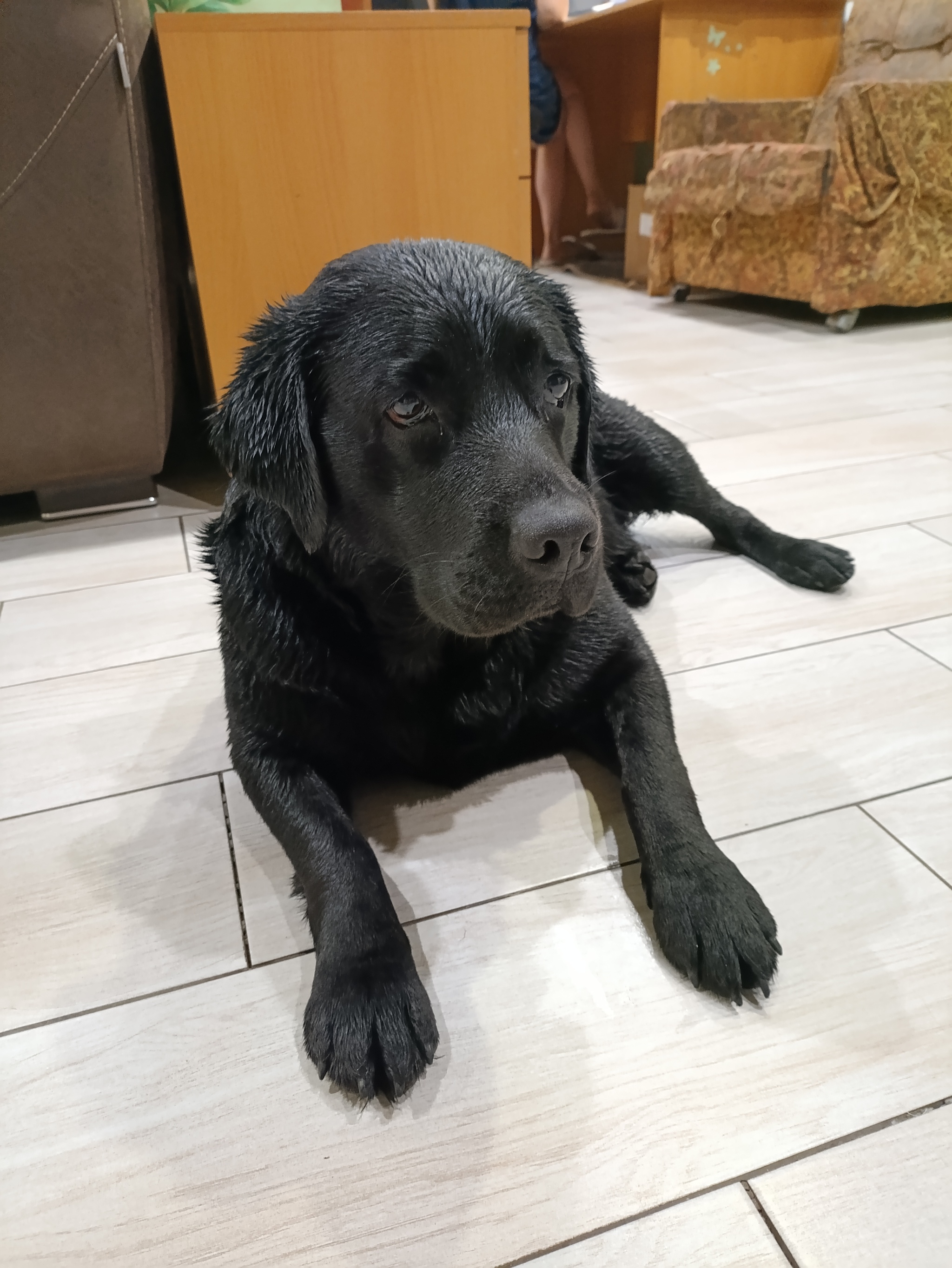 Сегодня моя лабрадура отметилась на прогулке купанием во всех встреченных лужах
