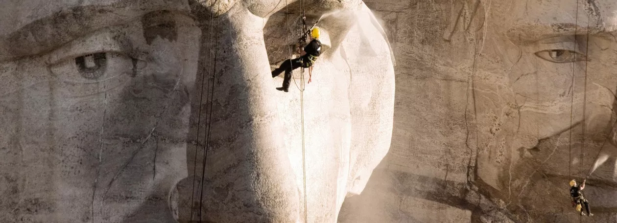 Вот, например, как отмывают скульптуры 4-х президентов на горе Рашмор: