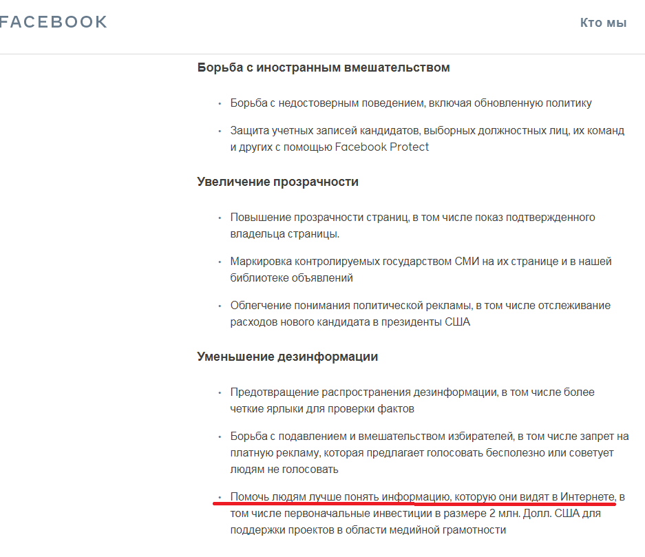 Американская компания Facebook с 4 июня начала маркировать страницы медиакорпораций, которые, по версии компании, полностью или частично находятся под контролем властей.