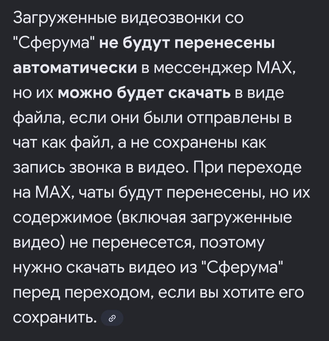 В декабре Сферум удалится со всех устройств, нас (студеток) автоматически перекинут в Макс, а вот видеозвонки и переписка не сохранятся. И скачать видеолекции со Сферума сейчас невозможно, нет кнопки "скачать", не придумана.