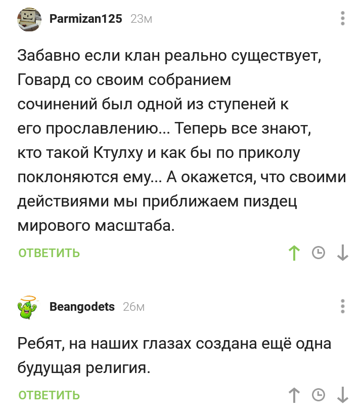 Комментарий в посте, где говорится о создании в США Церкви Ктулху, с блэкджеком и молитвами Йог-Сототу + ведением свадеб.
