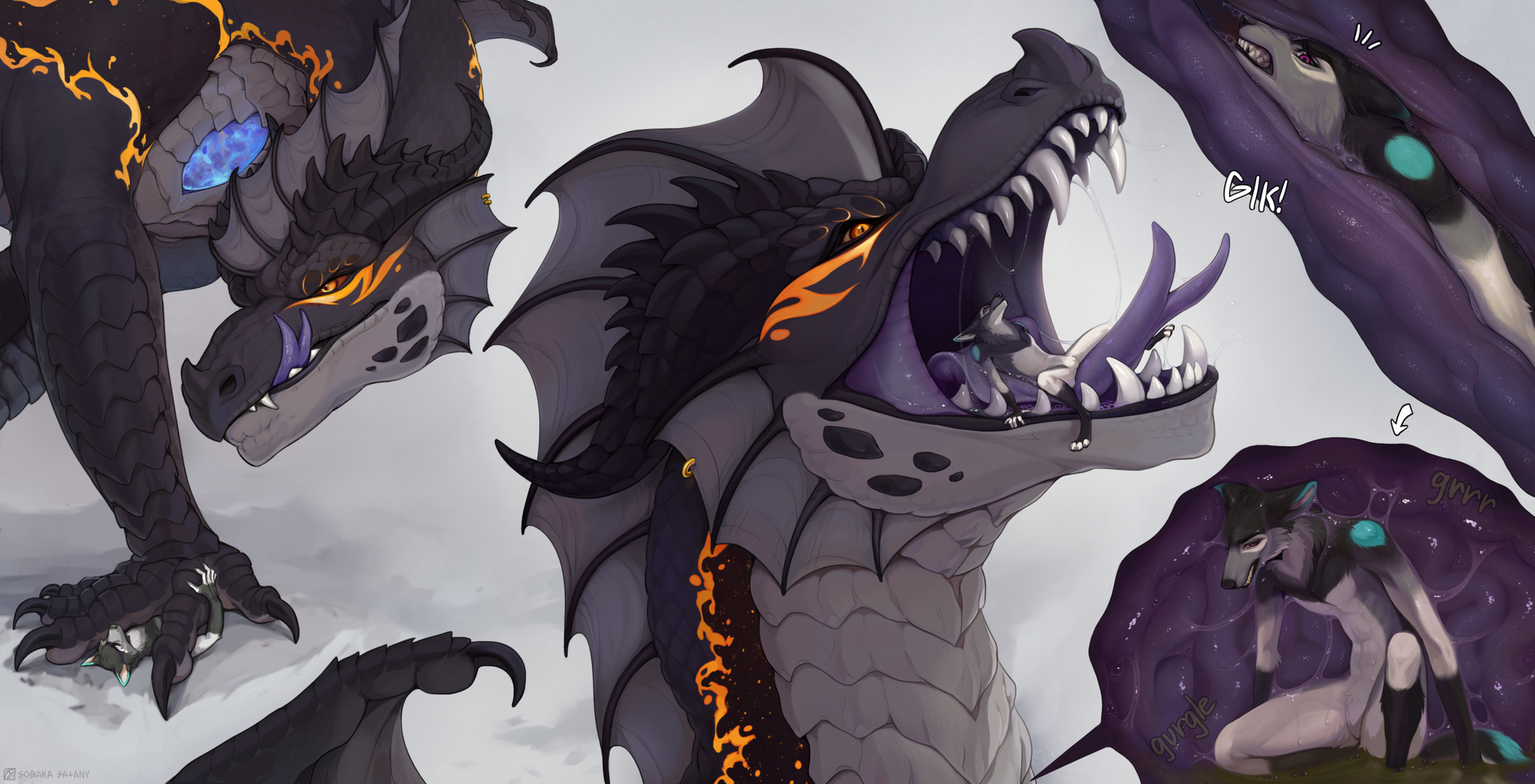 4 Uhfa Драконья обитель Попался! 1 месяц назад Автор: SobakaSatanyИсточник: FurAffinity Арт Дракон Furry wolf Furry Canine Vore Mawshot Пасть Язык Слюни Пасть Дракона Цифровой рисунок Aetherios Ещё 0