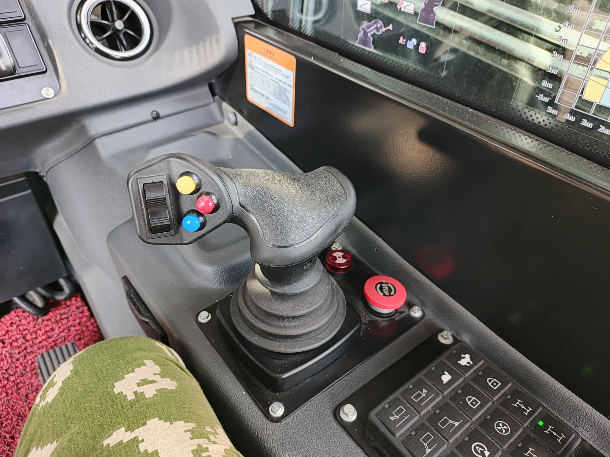 Джойстик, радует, что повторяет те же движения, "что приняты". Нет подлокотника, "подзапястника" (как я на нашем погрузчике называю")). Это конечно не очень хорошо, рука постоянно на весу.