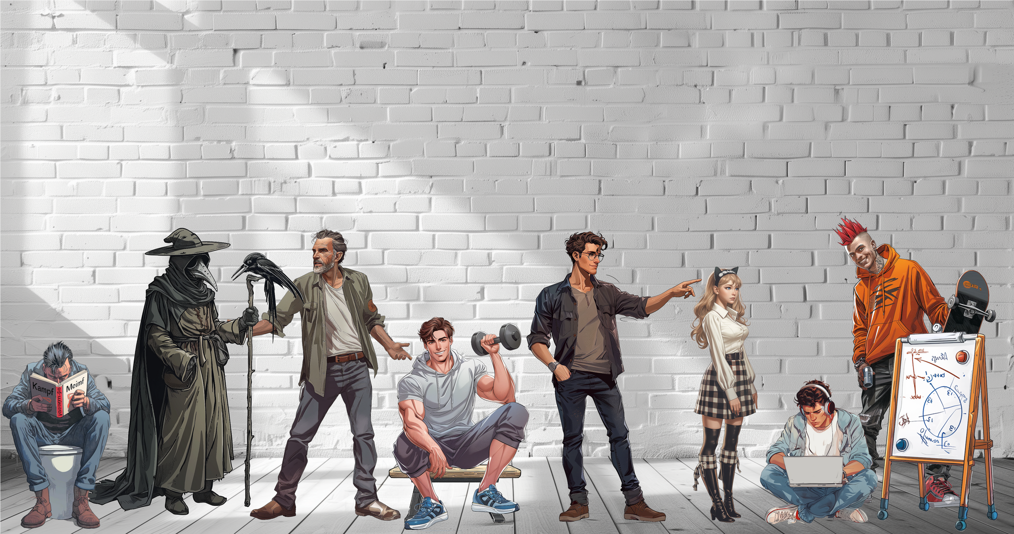 Из начальных данных у меня было только текстовое описание персонажей в количестве восьми и стиль в котором необходимо их нарисовать — комиксы типа dc или marvel. Первая мысль — просто забить все описания + описание окружающей обстановки и пусть нарисует. В результате сетка не нарисовала и половины героев, поэтому логичным было отрисовать каждого в отдельности а потом разместить в более менее простом интерьере — создать коллаж.