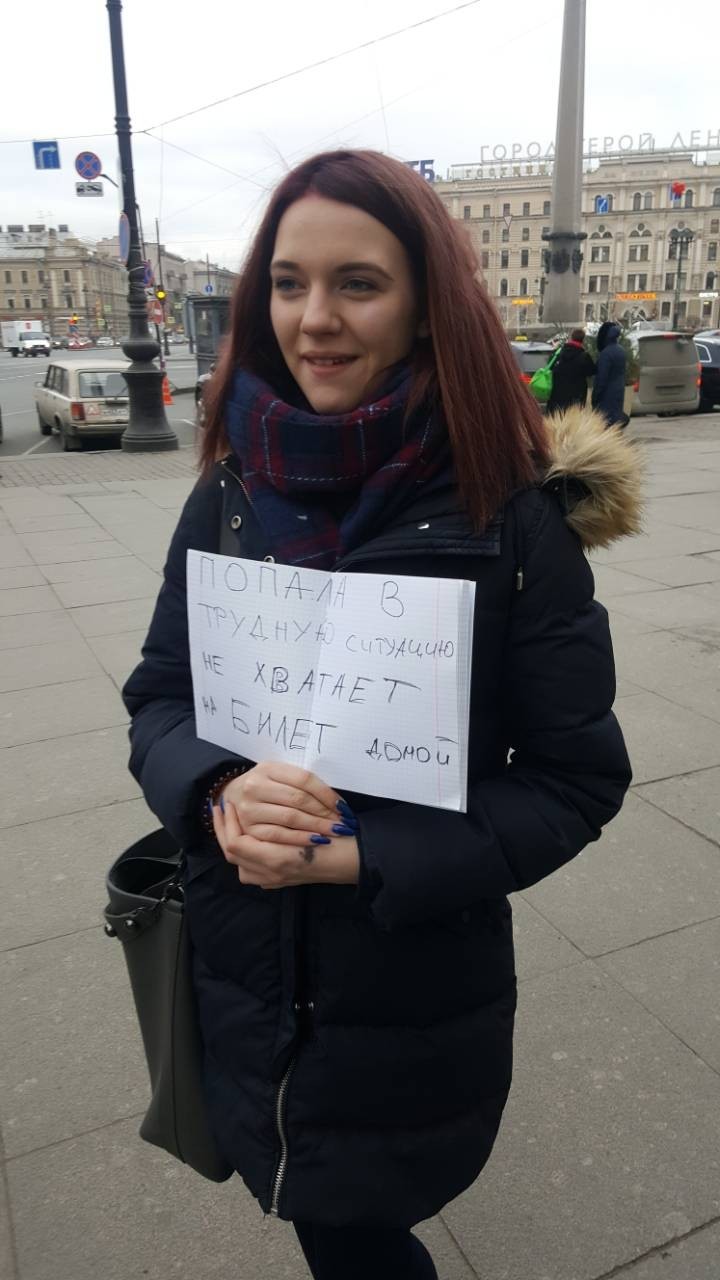 В ноябре 2017-го года я с отцом и дедом, по делам, так сказать, культурным, направился в Питер в музей артиллерии и связи. Купили билеты на сапсан, доехали с комфортом, все чинно и прекрасно. К слову , мне 25 - в хорошей физической форме. Отцу 45 - его физ. подготовке и виду позавидуют многие, так как в свои 45 он подтягивается 20+ раз, бегает, прыгает, ходит в тренажерку, бородатый, короче с виду похож на огромного злобного чечена) У нас было около получаса свободного времени перед тем как поехать к месту, поэтому мы с отцом решили прогуляться около вокзала. А к слову, было 19-е ноября и было очень холодно, поэтому мы решили быстренько ретироваться назад на вокзал. И на пути нас ожидала попрошайка с прекрасной и грустной табличкой о ее нелегкой жизни (см. фото). И тут отец выдает: "Я тут на Пикабу читал, что если подойти и сфотографировать, то сразу из воздуха материализуются страшные ребята - защитники попрошайки. Я пытался его отговорить, но было тщетно - мы подошли вплотную и сделали фотку) Тут , как откуда не возьмись, появились 2 мужика, начали угрожать и пр., мол это не наше дело и т.д., Пикабу кстати в этом коротком диалоге с их стороны был тоже упомянут. В итоге один прибурел сильно, и начал слегка так подталкивать отца в стиле "ты чоооо ты чоооооо ааа" ( чесслово, я не знаю на что он надеялся ). Мной сразу было принято решение налететь на него и начать его му**хать, т.к. дракой пахло неиллюзорно. Вообщем махач секунд 40 2х2, итог - одного я чуть не придушил в угаре драки, но тут налетели прохожие и господа полицейские) Началось "кто-то такие , что деретесь и т.д.", попросили документы , мы сказали что из Москвы приехали только, а к типам претензий нет, все нормально мол , давно не виделись. В итоге - полицаи нас отпустили и внимание - пошли с этими чуваками на вокзал , но отчётливо было слышно когда они уходили- "пацаны, ну вы че, хорош тут беспределить, нахер вы тут драку устроили".