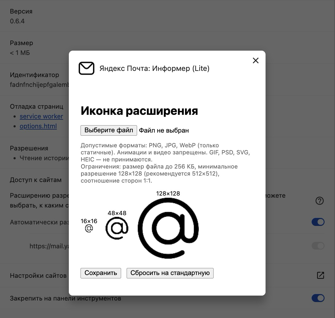 👉 И сегодня вышла новая версия 0.6.4 в которой появились параметры расширения и там можно загрузить любую свою иконку.