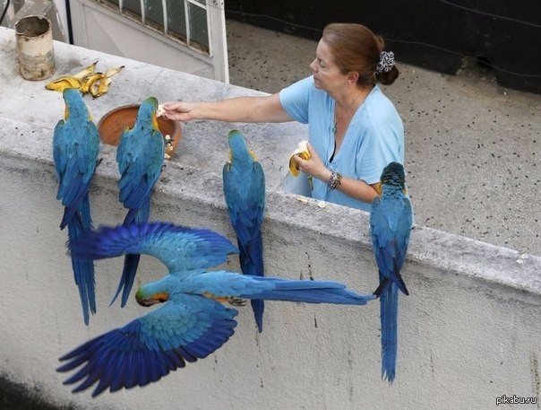 18 teachernottrue Попугаи ара вместо голубей, Каракас, Венесуэла 10 лет назад Попугай Корм для животных