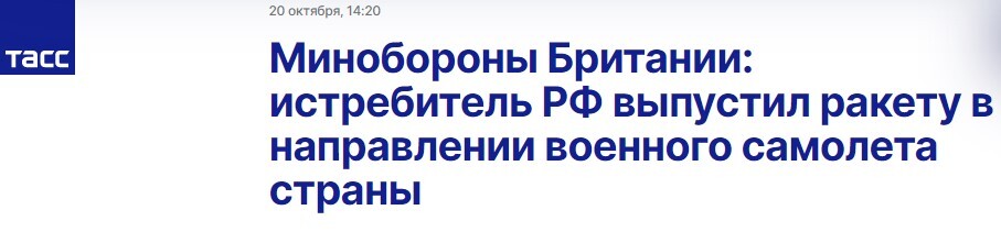 Минобороны Британии утверждает, что российский истребитель выпустил ракету в направлении британского военного самолета над Черным морем 29 сентября. Министр обороны Великобритании заявил, что обсудил с Шойгу инцидент с британским военным самолетом в районе Черного моря.
