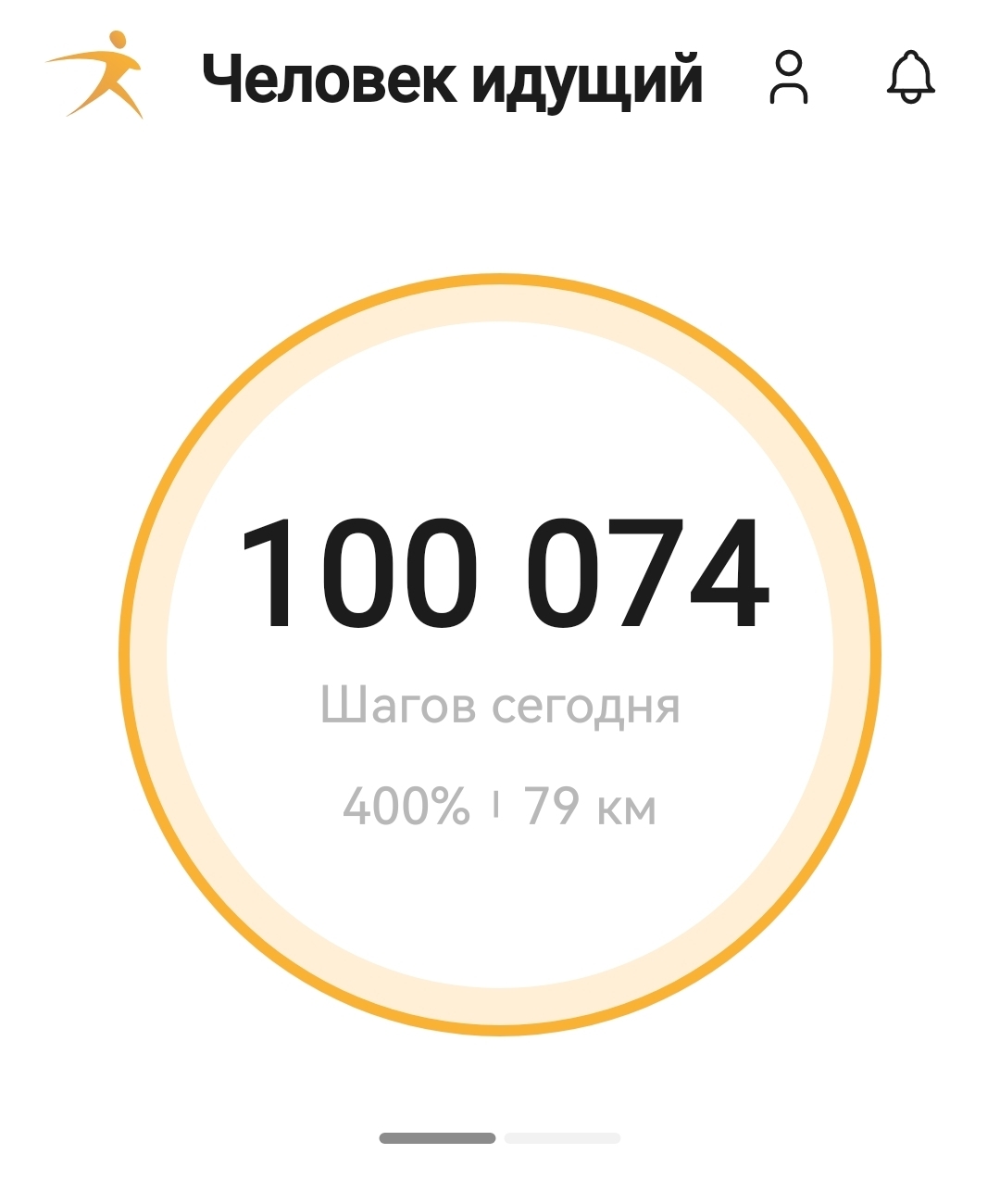 Что ещё можно сказать? Шагов столько было сделано за один день. Наверное, чтобы успеть до 22:00, пришлось проснуться в 3:00, выйти в 5:00. Пришлось делать перерывы после 50 тысяч шагов, закидываться бананами и творожными глазированными сырками, пить изотоники. Возможно, после последнего перерыва на 98 тысячах шагов и скриншота не было бы, по крайней мере с такими числами.