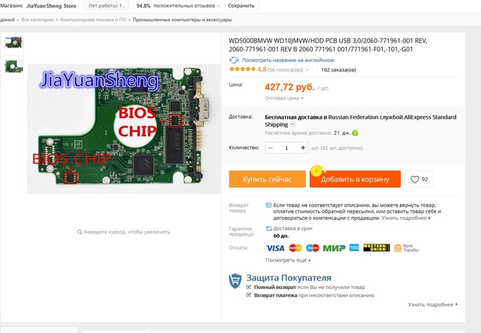 Ни одна из малопонятных для меня, но доступных в демо-версии утилиты функций мне не помогла, как бы я не вычитывал форумы. Пришел к выводу, что помер и Сата контролер на плате диска. Зная что в лабораториях меняют платы с доноров, я решил порыться в сусеках дядюшки Ляо, вбивая модель диска и партномер платы.